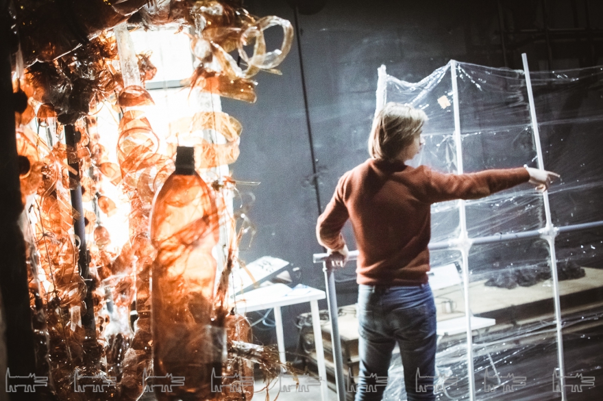 В «Углу», между тем, началась чехарда. Студенты I курса Казанского театрального училища борются с реквизитом. Они сами сделали из пластиковых бутылок, полиэтилена и труб замки, костюмы богатырей, заборы – и теперь вновь ищут, у кого что.