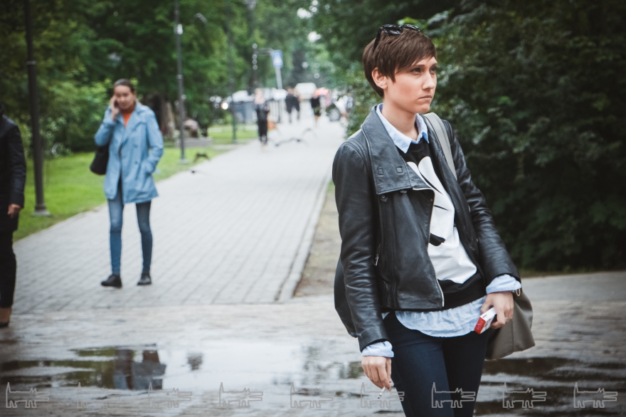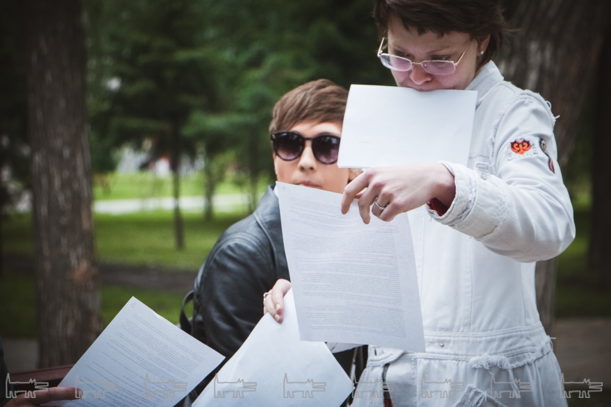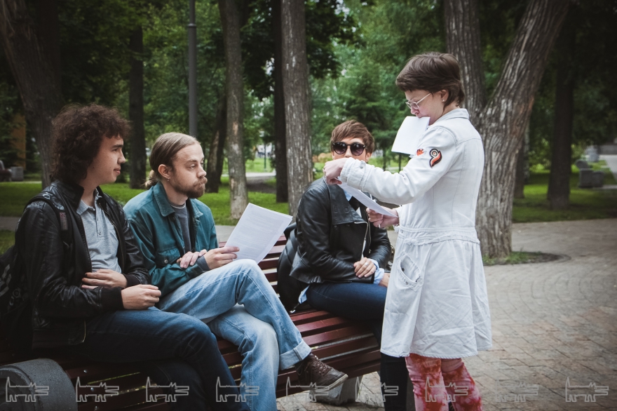 Участники последнего эскиза «В розовом» (будет еще вербатим по архивным письмам репрессированным, личным и официальным документам в подземной галерее на Баумана, но там читают «обычные люди») курят у Дома актера. Режиссер Регина Саттарова, которая только что показала в «Углу» в рамках лаборатории читку "МыДетиСети" (играла в нем стоящая рядом Анастасия Радвогина), командует – все к фонтану. Тут она делит локации по количеству скамеек, усаживает на ближайшие Резеду Хадиуллину (актрису из «Театра на Булаке») и Павла Полякова и заставляет читать их монологи. Один от лица кондукторши, втюрившейся в молдаванина. Другой - ловеласа-велосипедиста, который в сексуальных опытах перепробовал все.