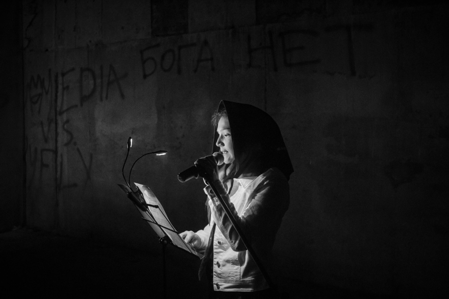 Работа режиссер Семена Серзина основана на материалах, собранных завлитом театра имени Камала Ниязом Игламовым. Читали их в мрачной галерее под улицей Баумана (порой в сопровождении баяна, курая и перкуссии, а также, к примеру, чтения священника) выбранные в случайном порядке зрители. Историй в тексте несколько - это судьба семьи писателя Василия Аксенова, чьи родители, Павел Васильевич, председатель Казанского горсовета, и Евгения Соломоновна Гинзбург, заведующая отделом культуры газеты «Красная Татария», прошли сталинские лагеря. На стенах катакомб - написанные мелом письма заключенной от сына Азата. Также в эскизе - весточки других заключенных, судебная справка о свияжской монахине и ответ на запрос художника Баки Урманче от судьбе брата. Вот некоторые из текстов.