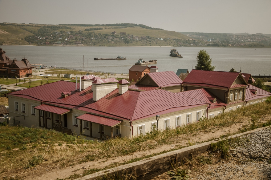 Он рекомендует сесть на лавочку. Садимся и смотрим на речной вокзал. Рядом возводят на месте археологического раскопа «Татарская слободка» Музей археологии дерева, причем крыша у него будет земляная. В этом месте с XVI века строили татарские дворы. Свияжск становится все более неоднозначным.