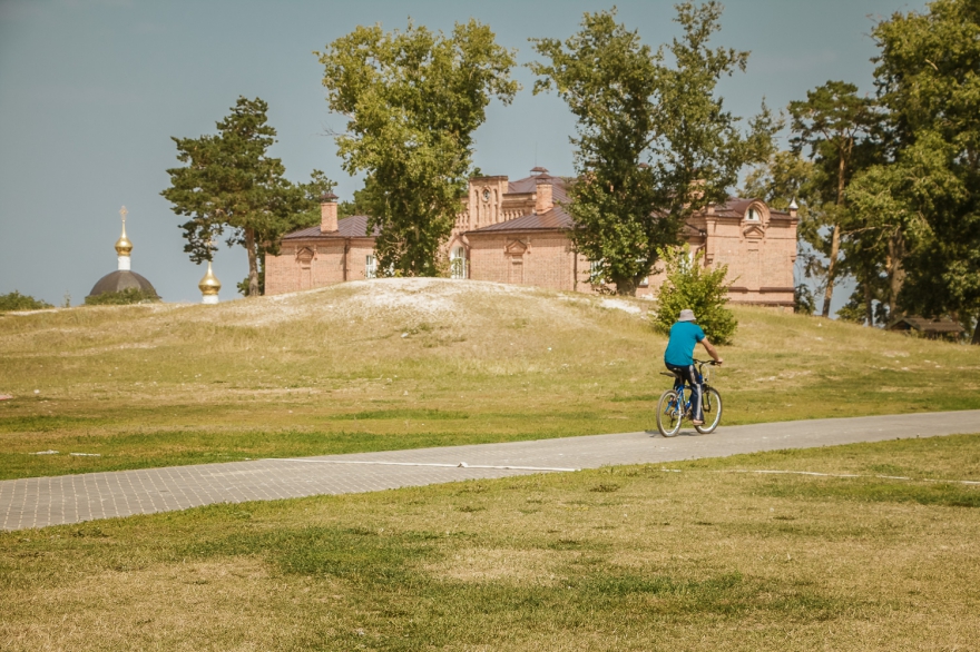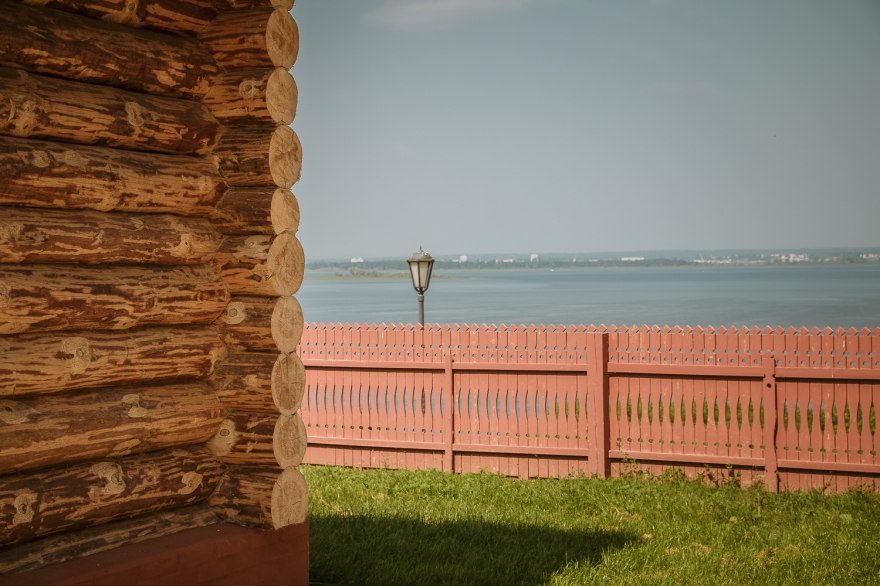 «Вторник - почему они все не на работе?», - Волкострелов морщится на туристов. Мы движемся вдоль берега, мимо школы, административных зданий, в опасной близости от «Ленивого торжка», где суровые кузнецы морщатся на редакторское поло с надписью «Болгар» - движемся в сторону Иоанно-Предтеченского монастыря, где фотограф делает особенно пафосные кадры. К слову, в отличие от Успенского, этот всю свою историю прожил достаточно счастливо и не потерял ни одного храма. Доминантному зданию острова, собору в честь иконы Божией Матери «Всех Скорбящих Радость», на фоне которой идет фотосессия, в этом году будет 110 лет.