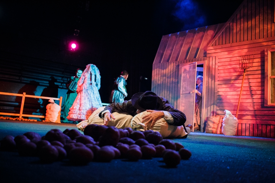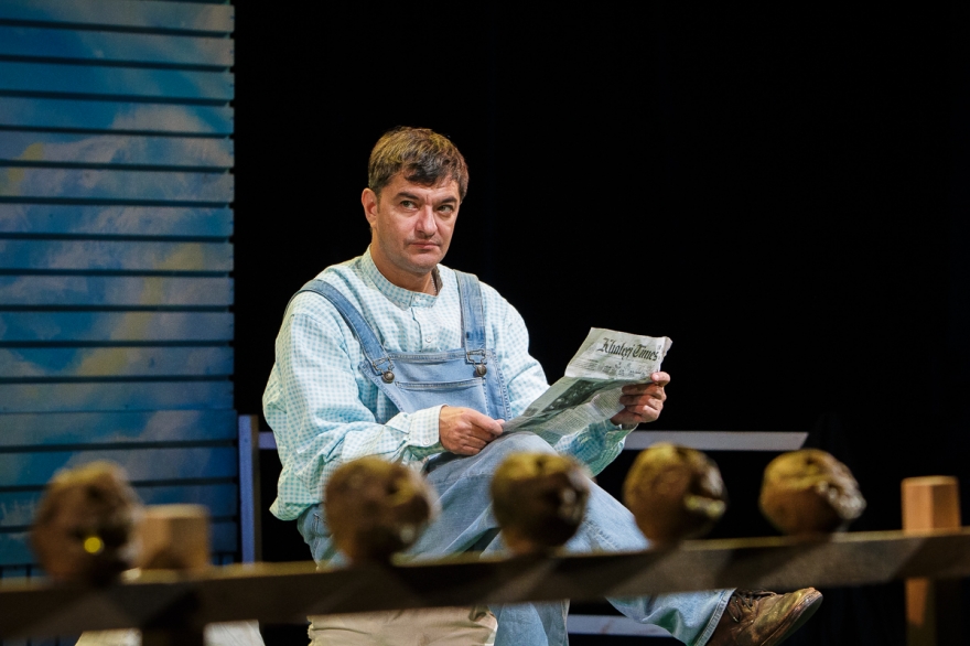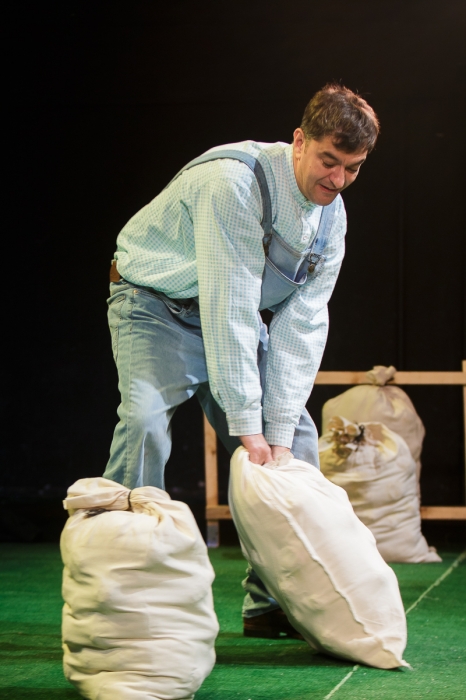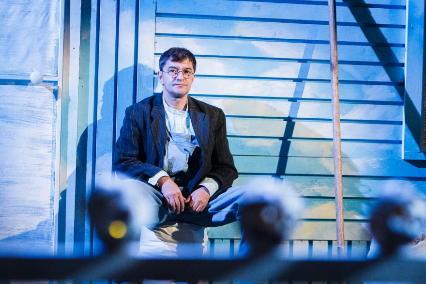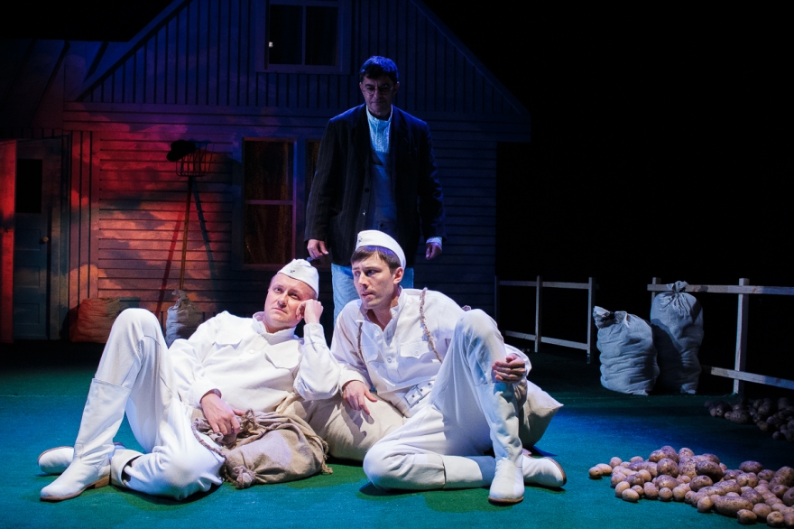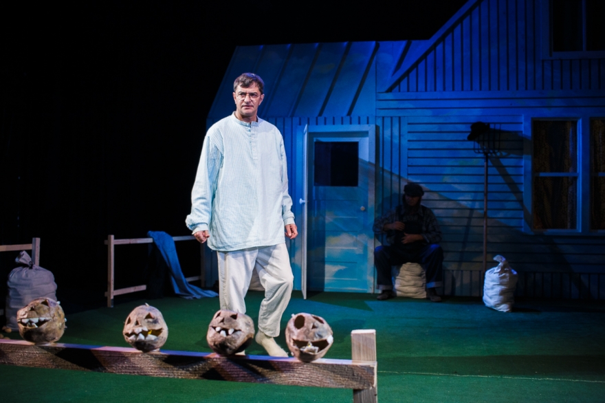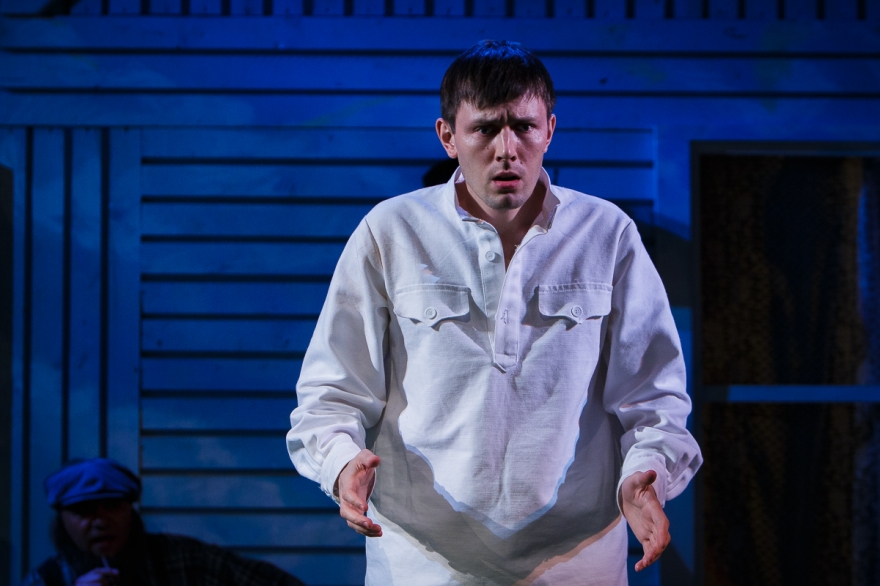 У него есть сосед - слишком колоритная для второстепенного персонажа роль шотландца досталась Минвали Габдуллину - который сообщает, что теперь, значит, можно вернуться домой. Весь спектакль - это рефлексия Накипа о том, чего он лишился, уехав из деревни (конечно, деревни, нельзя же представить татарский город) и через что прошел по пути к нынешнему дню. А это прощание с девушкой, матерью, война, плен, чужая страна. Как только понимаешь логику повествования, пьеса, честно говоря, становится несколько предсказуемой.