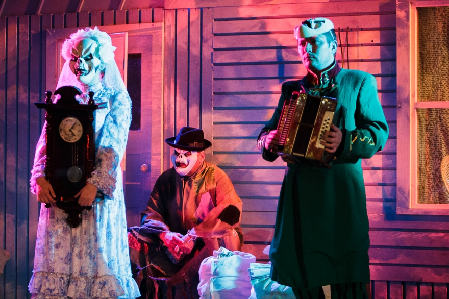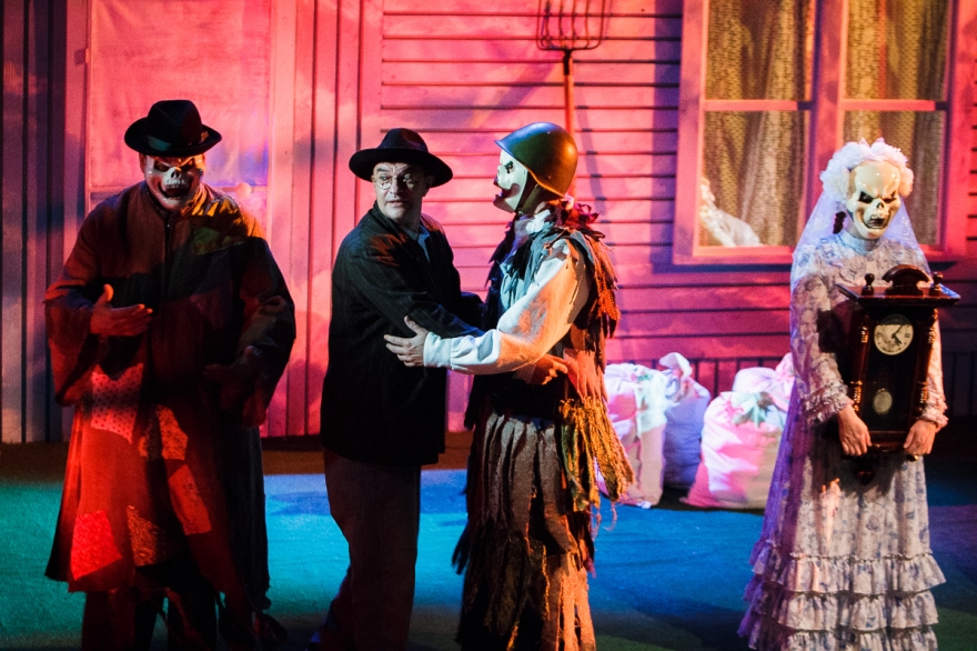 Но если, вообще, не рассматривать ее, как сюжетную, то все встает на свои места. Потому что, наверное, самое ценное, что есть в тексте Гаффаровой - это простор, который она дает для постановки и для комментария. Скажем, тема карнавала используется не только в нарядах на Хеллоуин. Солдаты - это белые ангелы. Враги - это сумасшедшие куклы. Татарские женщины - это втройне архетипы. В этом сочетании типичного и заграничного есть что-то хирургическое, когда красиво и больно. Возможно, Накип уже и не может понять, что из этого - его собственное. В его потерях, по сути, нет ничего национального, его потери - глобальны.