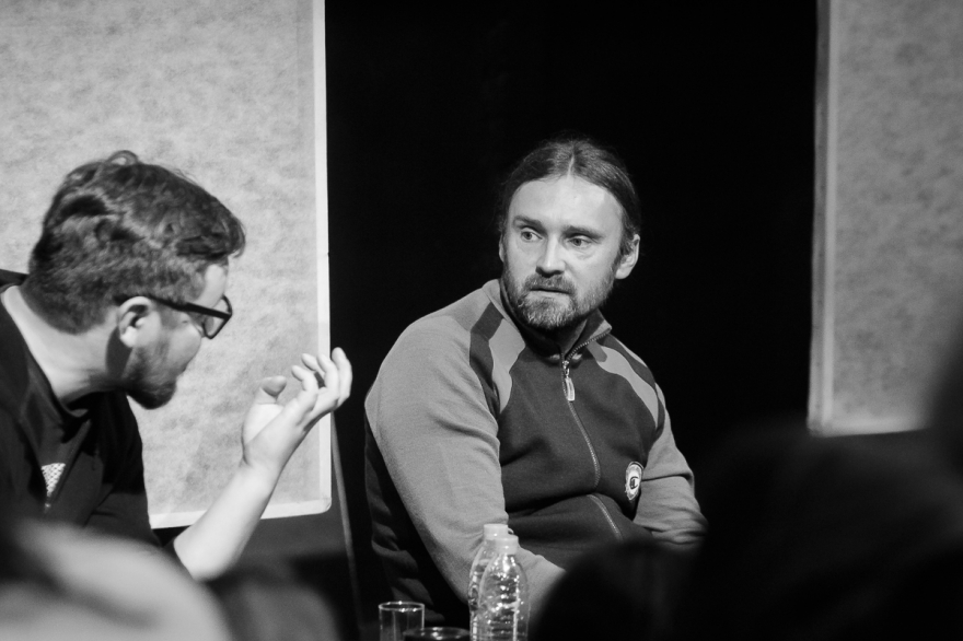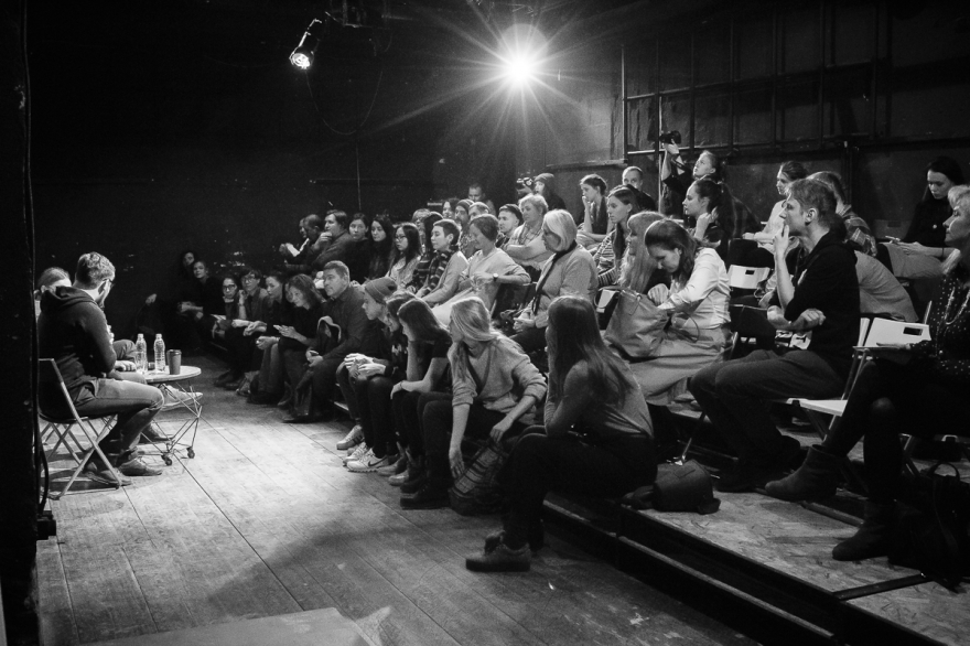 Драматург Павел Пряжко, чьи тексты приводят в пример, как образец разговорной речи, и которые стали основой репертуара «театра post», доехал до «Угла». По традициям слухачества мы запомнили, что он говорил, и приблизительно зафиксировали.