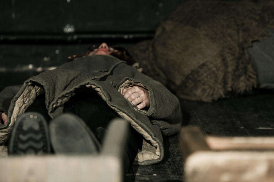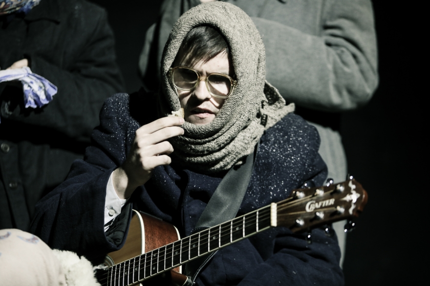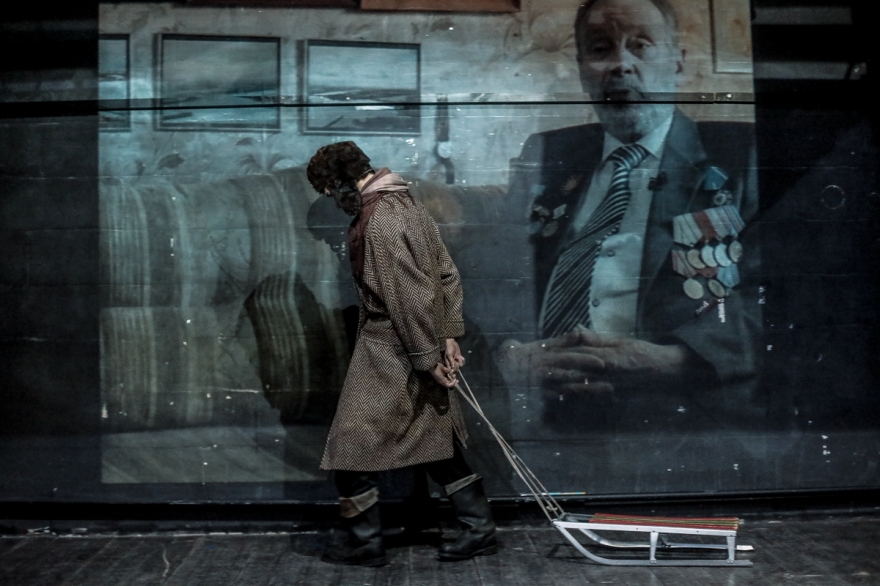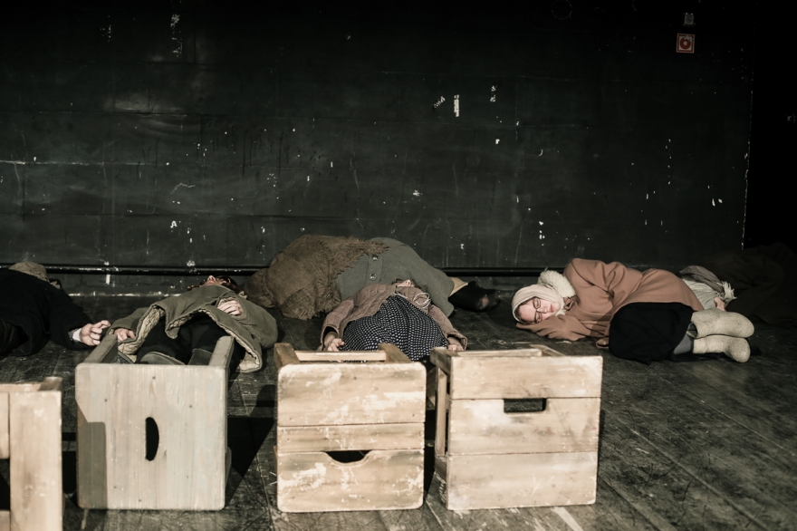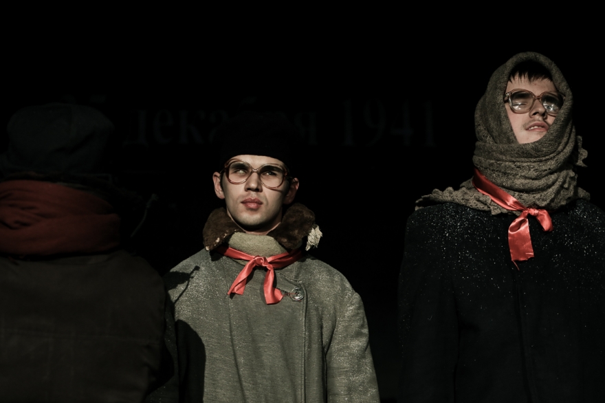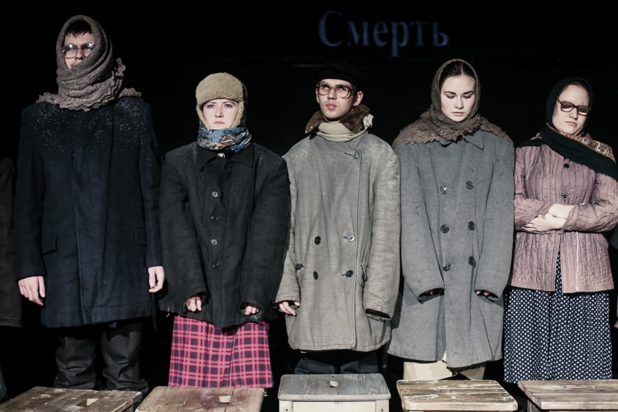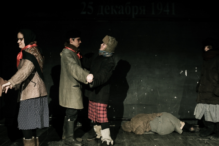 Эскиз по дневниковым записям детей блокадного Ленинграда. Здесь играют на гитаре и скрипке, кутаются в шали и тулупы, считают хлеб, радуются прибавке нормы, а в конце показывают, как в 2018 году дети едят крошки с земли, потому что Вторая мировая все еще не закончилась.