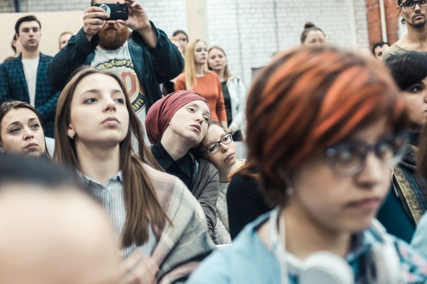 С ребятами мы занимались с сентября, и начиная с тех дней я просила их писать тексты, при этом не давала им направления, про что. Не о детстве, скажем, или любви, а о том, что их трогает. Моей целью было - сформировать актерский ансамбль, так что я давала тренинги... Вообще, каждая репетиция не была похожа на другую. Когда мы вышли на финальный этап, обозначили точки, про которые хотим рассказать, у каждого было по шесть-семь историй, из них я собрала текст спектакля, мы начали работать с каждым индивидуально, потому что у каждого здесь есть момент высказывания. Хочется продолжать. Кстати, мы думали даже снять фильм!