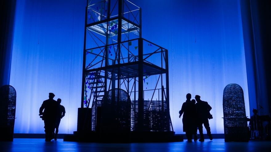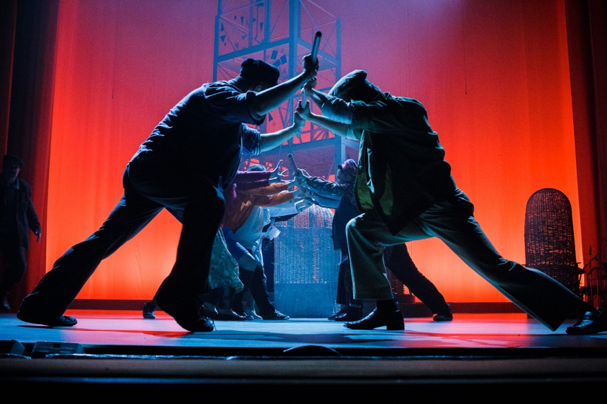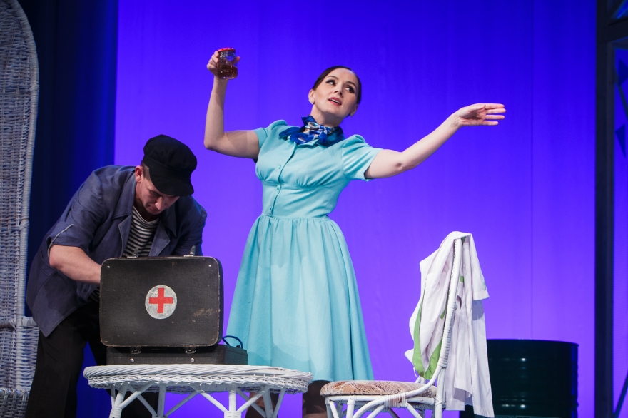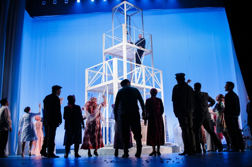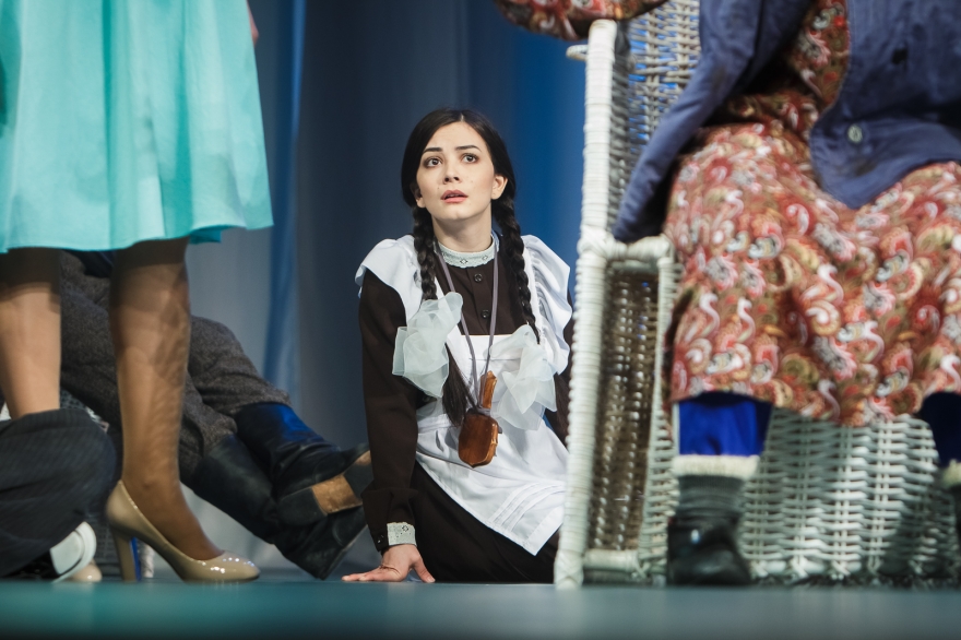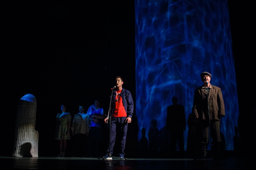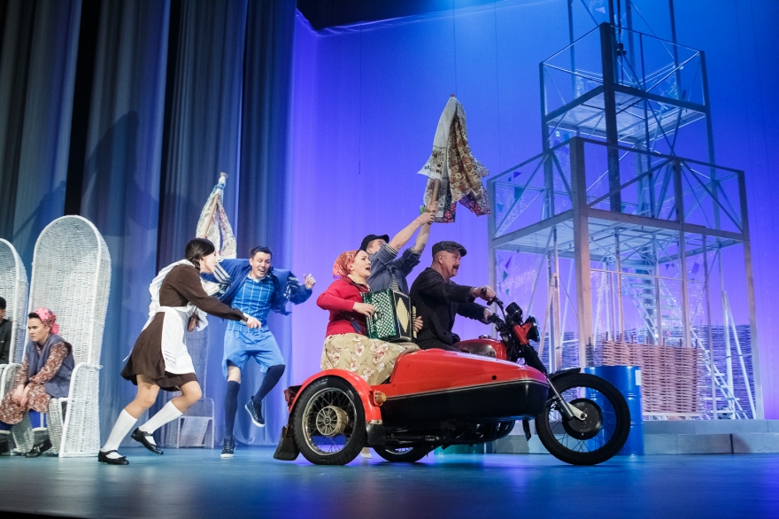 Десять лет Рамиль Тухватуллин, коронной ролью которого был Булат в «Голубой шали», снимал кино, работал чиновником и даже оказался в Качаловском. Теперь же на сцене он поет в новом спектакле с нынешним Булатом, Ришатом Ахмадуллиным: Эльмир Низамов сочинил несколько песен в духе американских мюзиклов — скажем, про любовь к огурцам в стиле соул. Все вместе поначалу кажется красивым оммажем к постановкам девяностых с элементами шоу, но чем дальше, тем меньше в происходящем времени, а больше вопросов.
