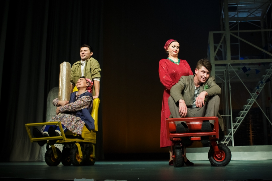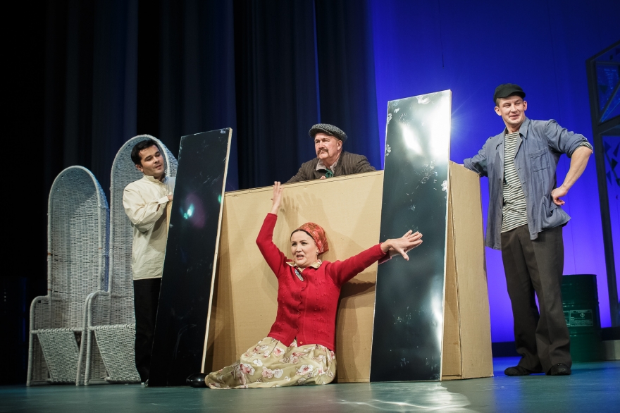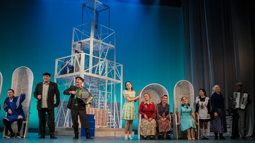 Бикчантаев — не единственный, кто взялся в этом сезоне за советский материал. В Тинчуринском сейчас идет комедия Хая Вахита «Скрытые следы», где одна из сюжетных линий — совершенно непонятная молодежи борьба за некое место в некоем райкоме. В Камаловском, благодаря бравурным маршам, цветастым нарядам словно с плакатов совдепа также царит бодрый предперестроечный дух.