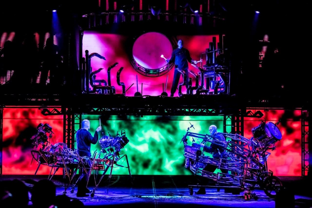 Всяких необычностей в шоу полно. Если говорить о диковинных музыкальных инструментах, то в шоу есть гигантская перкуссионная установка, сделанная из ПВХ-труб. На ней играют три «блюмена» сразу. Внешне инструмент похож на орган, но звучание у него абсолютно уникальное. Еще специально для шоу создали то, что сами мы называем «дромбоном». Фишка «дромбона» в возможности менять высоту звука, регулируя длину составных частей инструмента. Тут можно увидеть сходство с тромбоном, который тоже «скользит» из одного звука в другой, но при помощи выдвижного колена. Вы удивитесь, но «дромбон» как и наша перкуссионная установка тоже выполнен из ПВХ-труб. Как видите, мы их просто обожаем.