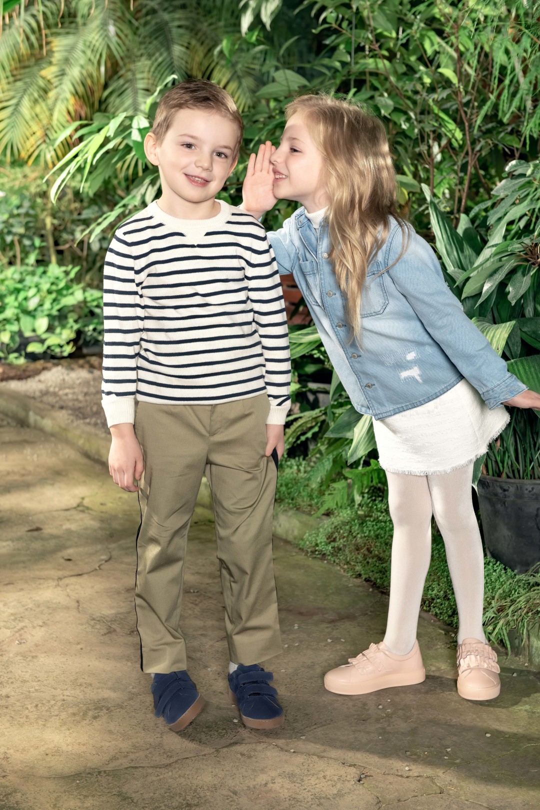 На жизнеутверждающих кадрах семья гуляет по оранжерее в обуви из новой линейки бренда – лаконичных лоферах, классических туфлях, универсальных брогах и кедах с усиленным протектором. Для детей Ralf Ringer создал балетки с бантами, кроссовки на устойчивой подошве и мокасины – почти уменьшенная копия модели взрослых.