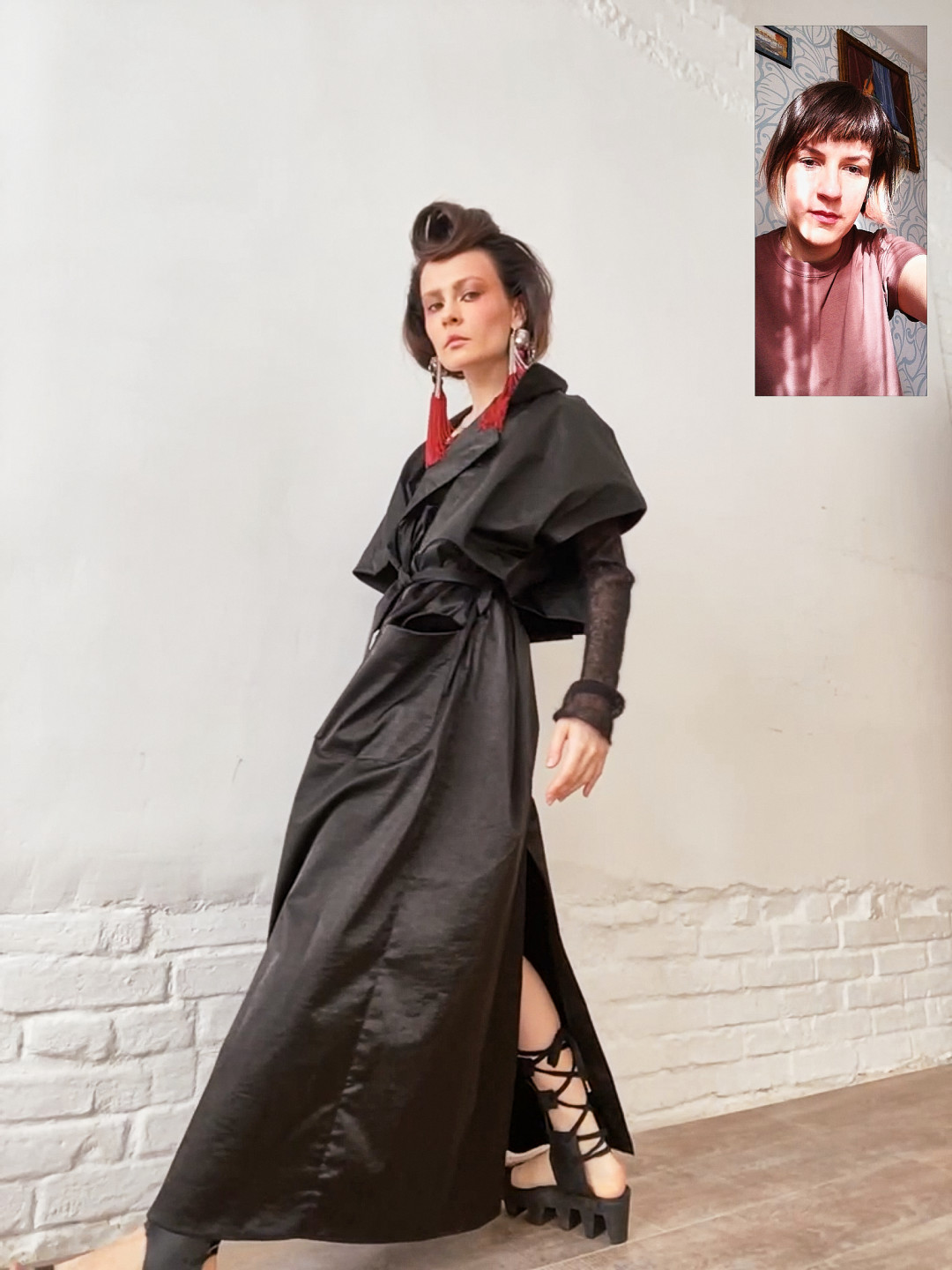 «Это интересный опыт – снимать лукбуки через веб-камеру еще не приходилось. В этом есть свои сложности: например, на модель ложится больше ответственности, она должна подготовить интерьер, сама установить телефон, одеться, двигаться медленнее, чем при обычной съемке, чтобы не было смазанных кадров. Этой историей мы хотим показать то, что карантин — не повод для плохого настроения, наоборот, ограничения – шанс для поиска новых возможностей».