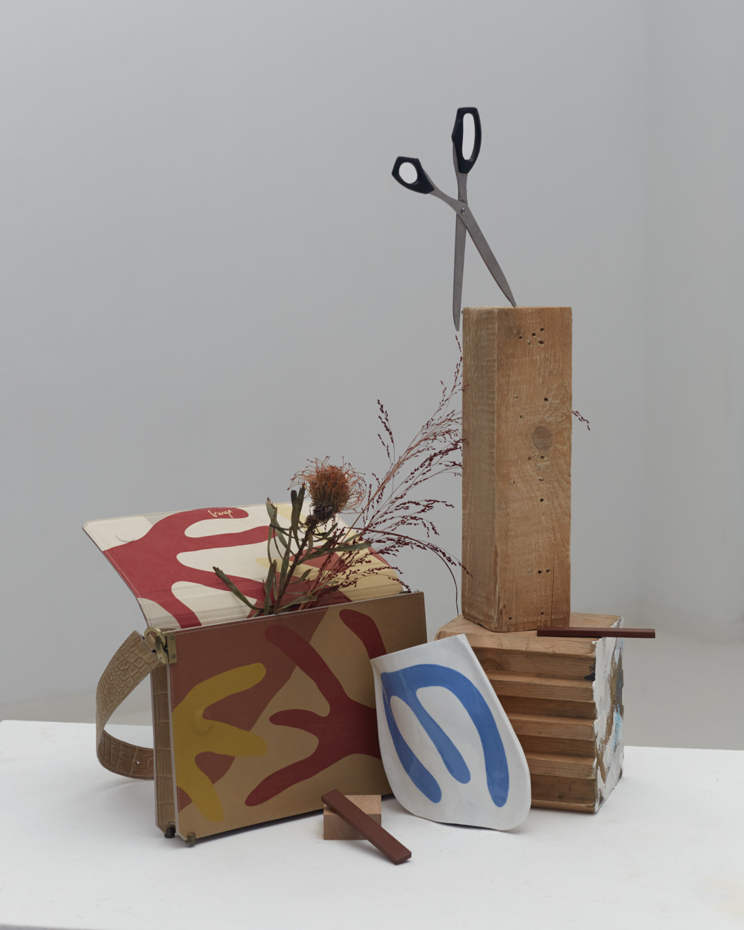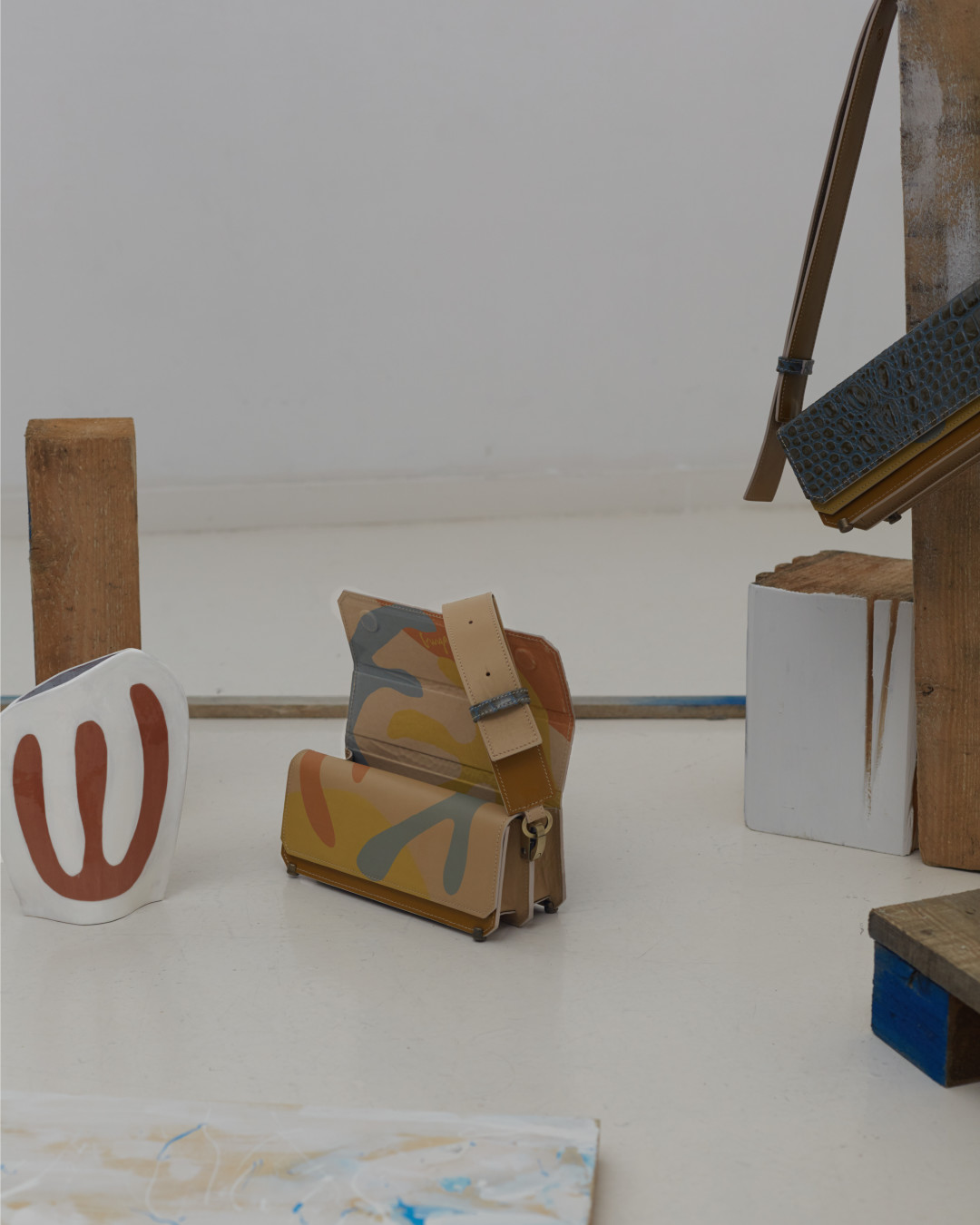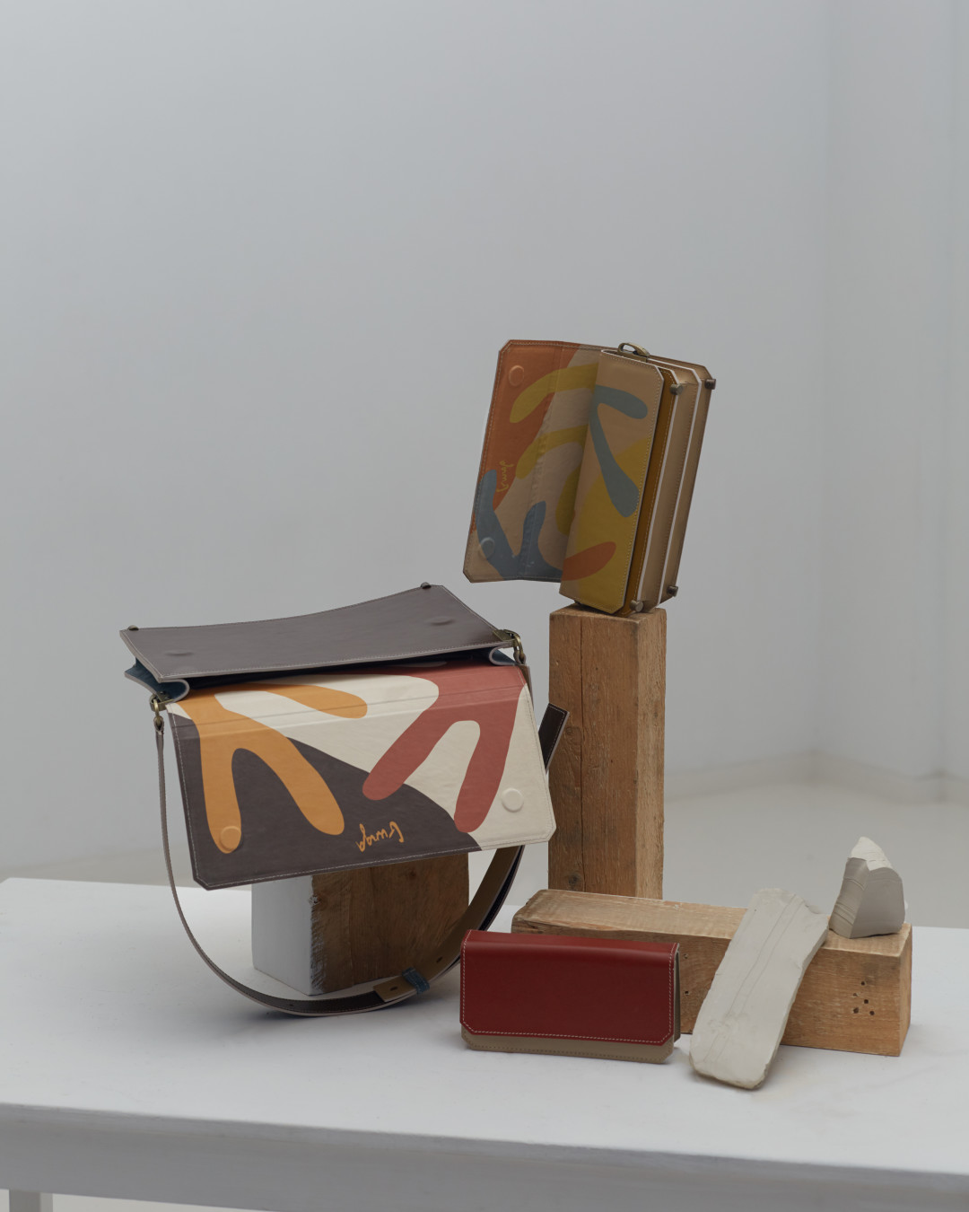 В коллаборации представлено по 8 сумок и ваз, объединенных не только общими цветовыми решениями и рисунками, но и любовью девушек к работе руками. Узоры на сумках натуральных оттенков охры, кирпичного и бежевого покрывают кожаные подклады, а керамические вазы — двусторонние по цвету и в более ярких тонах — полностью расписаны вручную.