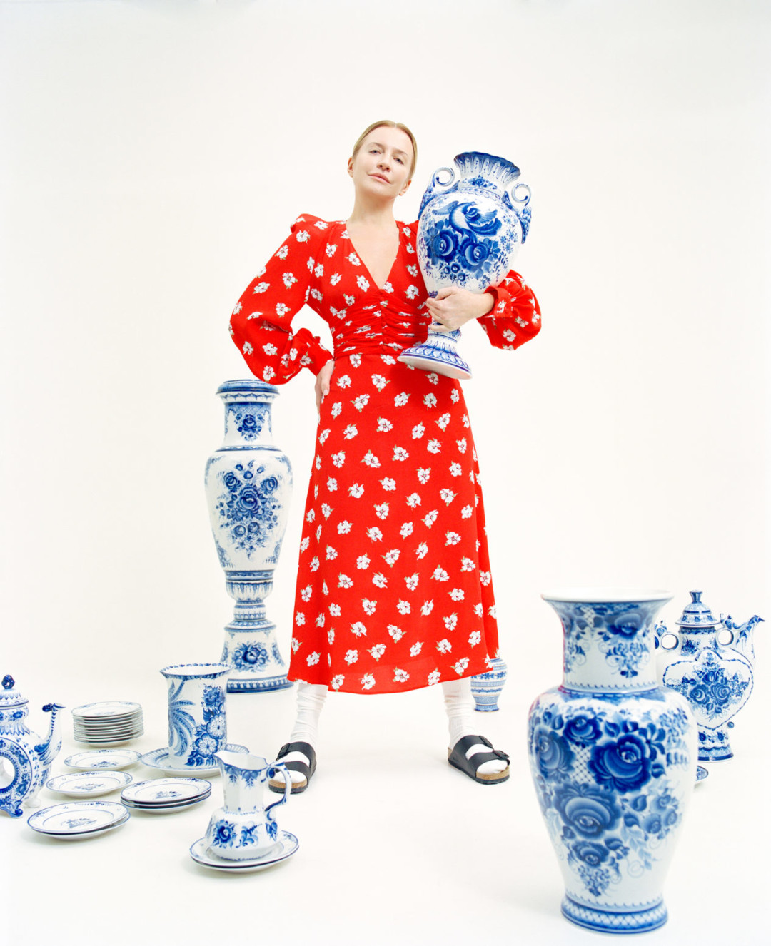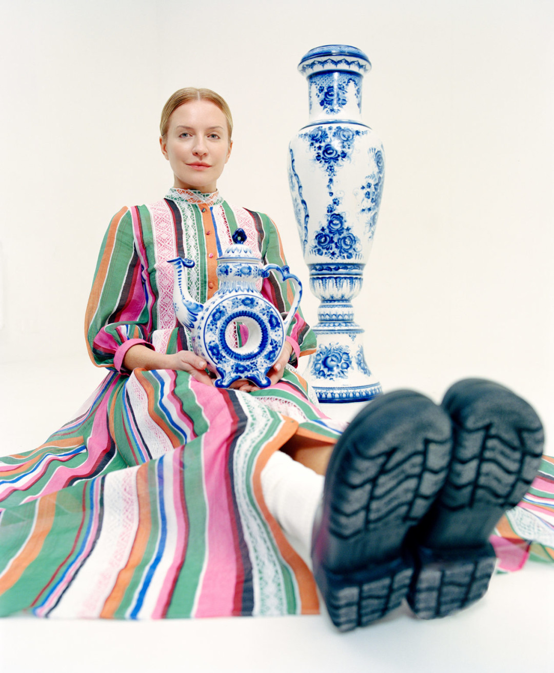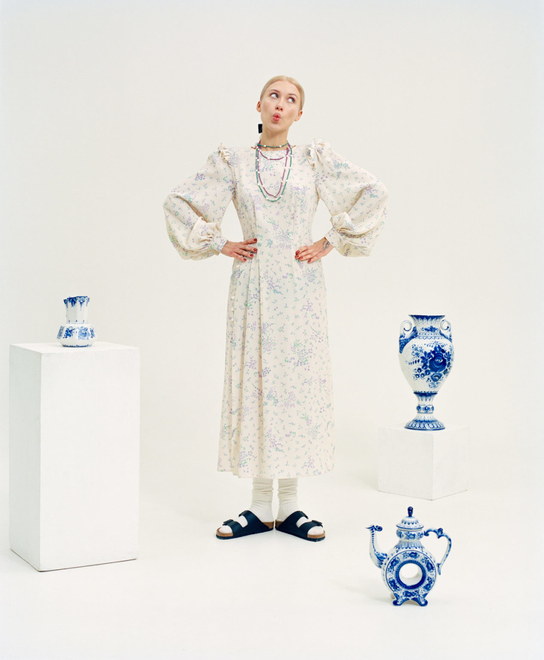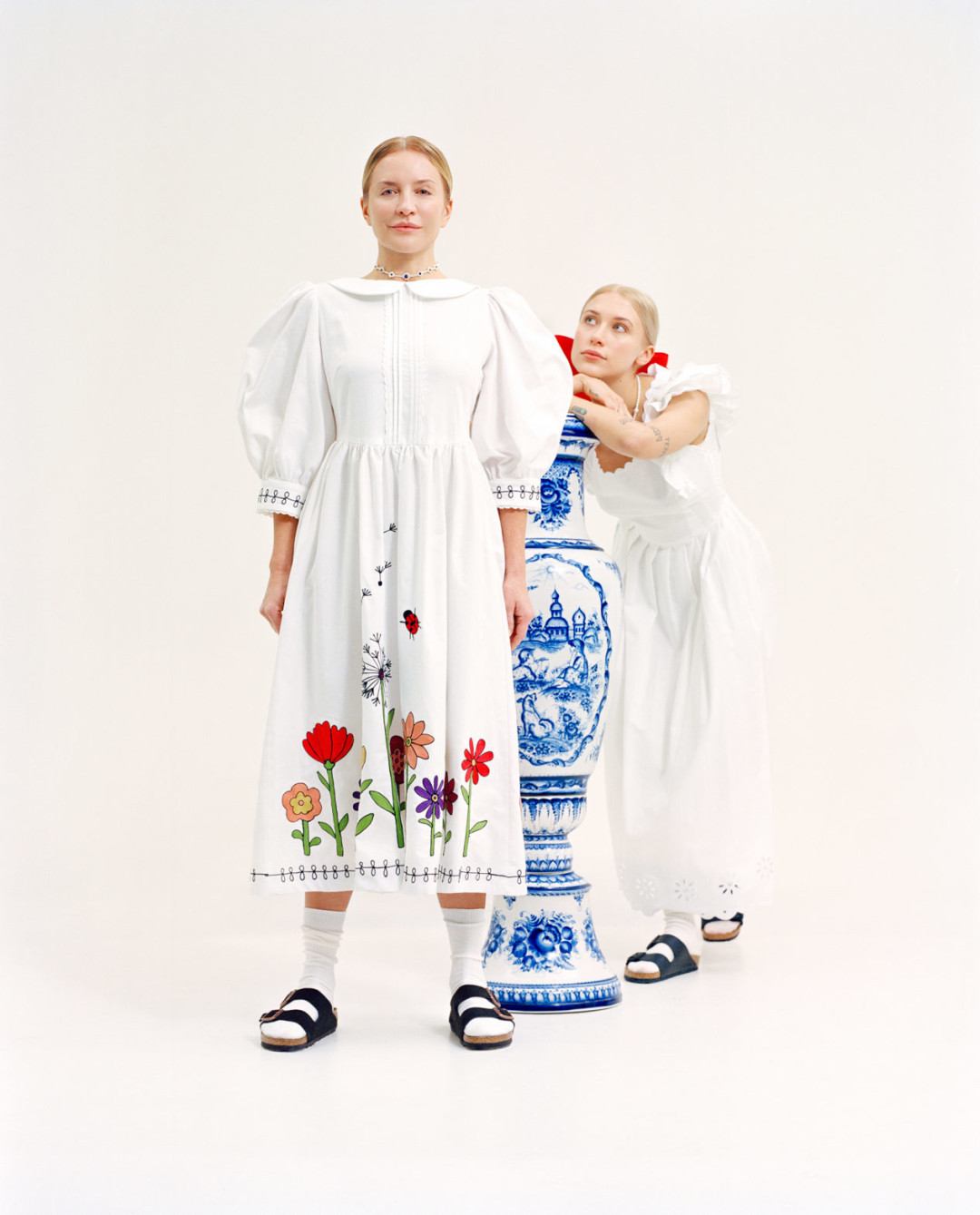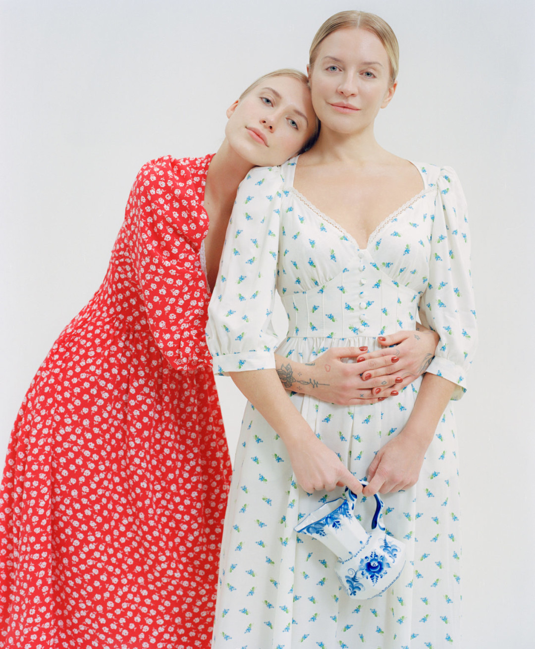 Варвара и Виктория позируют в платьях, отсылающих к национальным костюмам. Над вещами из новой коллекции дизайнер марки Светлана Родина работала вместе с мастерицами фабрики «Елецкие кружева». А в съемке принял участие легендарный завод «Объединение Гжель» — предметы декора, украшенные народной росписью, создавались именно на нем. При такой концентрации русскости выбор Варвары и Виктории на роли главных героинь кампейна вопросов не вызывает. Пара совпала!