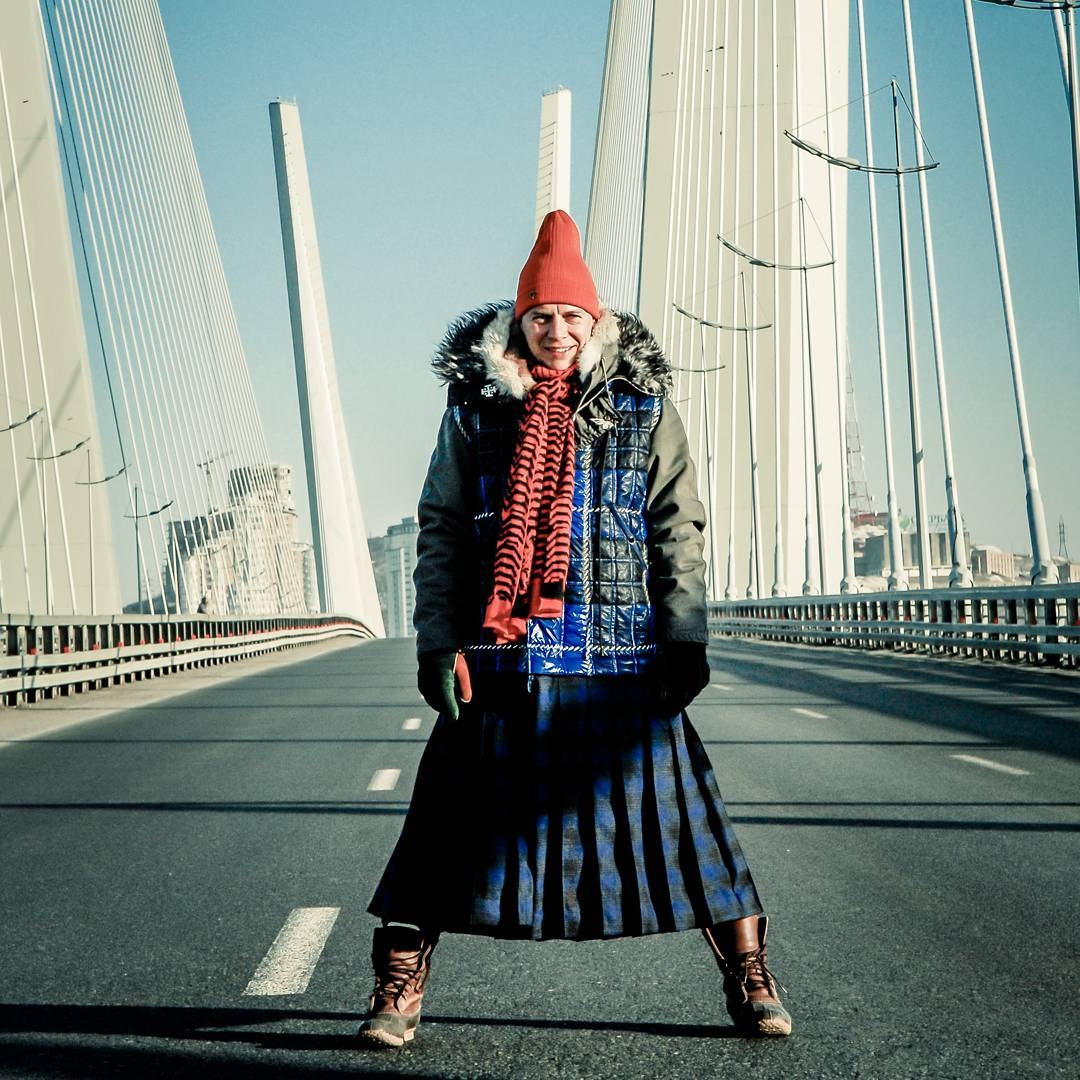 Бархатные, твидовые, шерстяные или тартановые: Лагутенко дает мастер-класс по носке любых костюмов, сочетая их с принтованными рубашками или бланковыми футболками с названием своей группы. Иногда вместо брюк музыкант надевает шотланский килт, подтверждая нашу теорию о том, что мужчина в юбке — это сексуально и брутально.