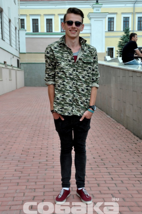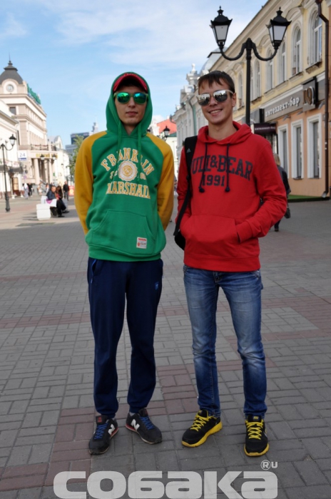 Казанцы предпочитают носить броские футболки или рубашки с ярким принтом, сочетая их с узкими джинсами или особенно сейчас популярными коричневыми брюками. В обуви сегодня большое разнообразие: от классических лоферов до хай-топеров или сникерсов. Последний писк уличной моды - сочетание коричневых брюк с замшевыми ботинками дерби.