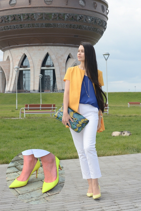 На Наиле: Пиджак CMNCWoman, майка H&M, джинсы UnitedColorsofBenetton, туфли Aldo, сумка китайского производства, браслеты и колье - хэнд мэйд.