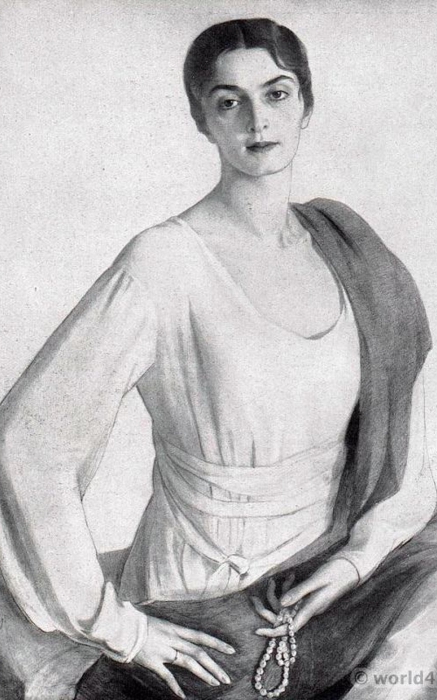 Первой всемирно известной моделью из Петербурга двадцатого века стала княгиня Мария Эристова: красавица с грузинскими корнями переехала в Петербург и благодаря исключительной внешности была принята во фрейлины императрицы Александры Федоровны, жены Николая II. Популярность Эристовой в Европе связана с общей модой на Кавказ: в 1920-х годах копировали стилистические элементы военной одежды региона (например, папахи и крой мундиров), а манекенщице с кавказской внешностью сложно было остаться без работы в Париже. Биографы сообщают, что в 1925 году в Chanel Эристову пригласила сама мадемуазель Коко — и Марию, знавшую три языка, очень ценили: модели в ту эпоху были «говорящими» — нужно было не только носить на себе одежду дома, но и рассказывать клиенткам о вещах, которые на тебе надеты.