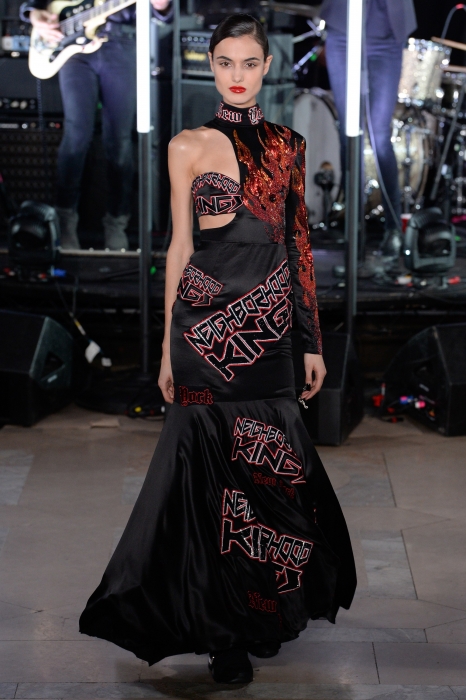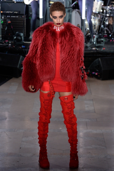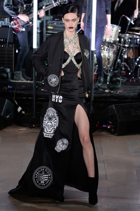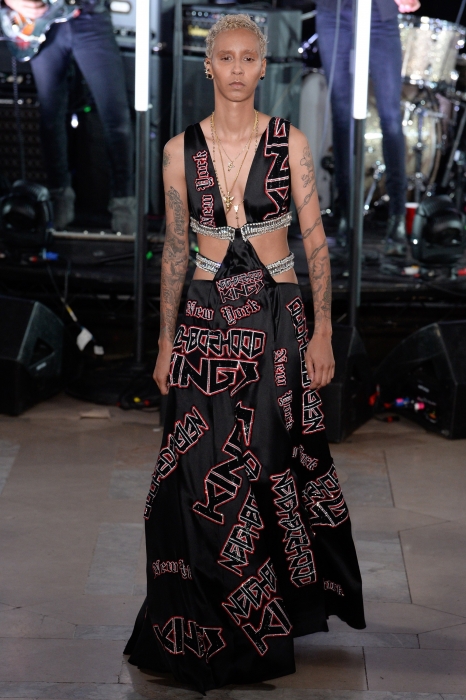 Нарушениям правил и посвящена новая коллекция дизайнера: девушки носят вечерние платья с бомберами или пуховиками, мужчины — шубы с джинсами, а футболки украшают статуи свободы в красном цвете. А на первом ряду показа мы увидели самых известных провокаторов современной поп-культуры — Мадонну, Кайли Дженнер и Пэрис Хилтон.