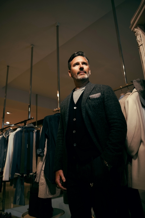 Eleventy — это современное выражение итальянского стиля. При этом мы стараемся одеть новое поколение. Мне 48 лет, и я хочу выглядеть моложе. Поэтому мое желание - одеть людей от 25 до 75 лет, чтобы они смотрели в зеркало и им нравилось отражение. Молодежи это очень важно: что они едят, как занимаются фитнесом. Мой отец выглядел в моем возрасте старше, чем я, потому что стиль поменялся. Так что я выбираю то, что хочу носить сам. Такой современный классический взрослый стиль. Для коллекцию весна-лето я многое взял из Африки — скажем, песочные цвета, цвета неба. И этот микс мы представили в презентации. Мне нравится стиль casual office, новый дресс-код. Несколько лет назад все ходили в черных костюмах, в галстуках, в белых рубашках Сейчас люди носят пиджаки с джинсами. Мы вписываемся в этот стиль. Вот смотрите — у меня самого рубашка, кардиган, джинсы из Японии, пиджак от портного. Все очень утонченное. Такова наша стратегия.
