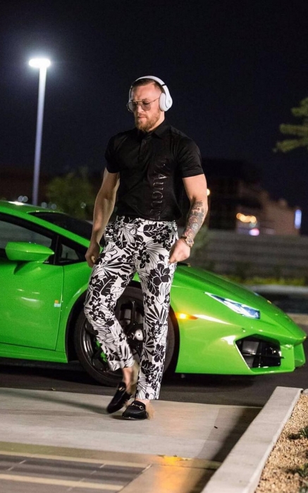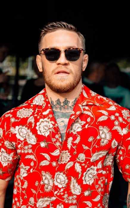 Пожалуй, никому не идут гавайские рубашки так, как МакГрегору: он сумел отбросить их от олдскульных коннотаций и сделать вещью сезона, миксуя с классическими брюками и английскими лоферами. Только вот хватает таких рубашек на один раз: Конор пытается завоевать титулы во всех весовых категориях и поэтому худеет и поправляется от боя к бою. Хотя дизайнеры, с которыми атлет уже успел подружиться, не прочь прислать ему новые партии вместе с брендированными халатами, шелковыми футболками и дорогими носками.