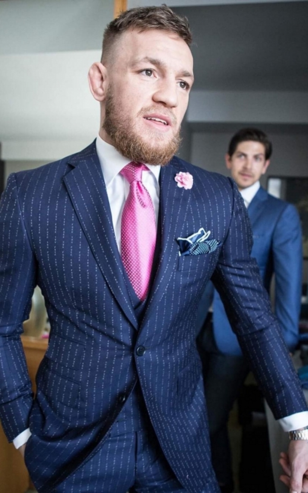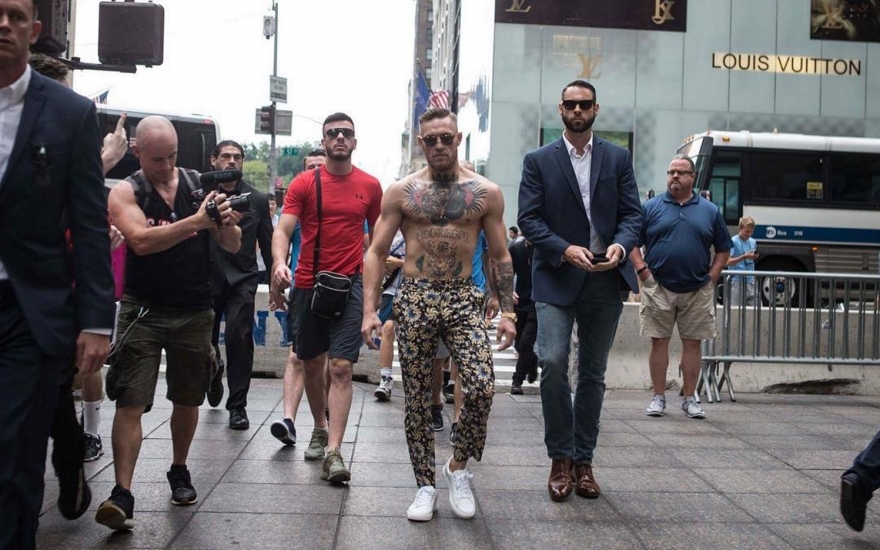 До того, как стать лучшим бойцом ММА в легком и полулегком весе, МакГрегор был обычным водопроводчиком, который еле-еле сводил концы с концами. Внезапно обрушившаяся слава чемпиона заставила его учиться носить красивые вещи и таким способом привлекать внимание не только к своей персоне, но и к спорту, который до него, скажем прямо, не был таким массовым. За Конором закрепили команду голливудских стилистов WME, которая, помимо бойцов микс-файта, одевает баскетболиста Леброна Джеймса, режиссера Мартина Скорсезе, актрису Шарлиз Терон, теннисистку Серену Уильямс и телеведущую Опру Уинфри. Ребята познакомили ирландского сантехника с марками Louis Vuitton, Dolce & Gabbana и Hermes и показали, как производить впечатление еще до выхода в октагон.