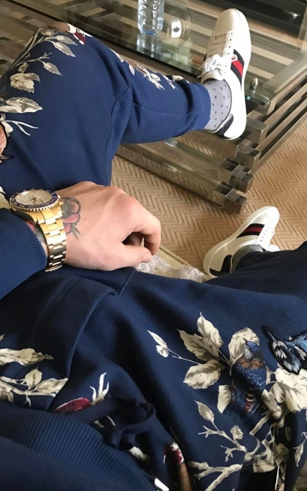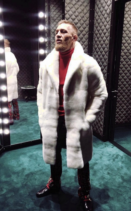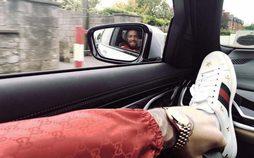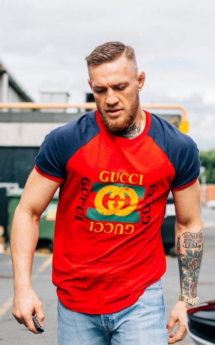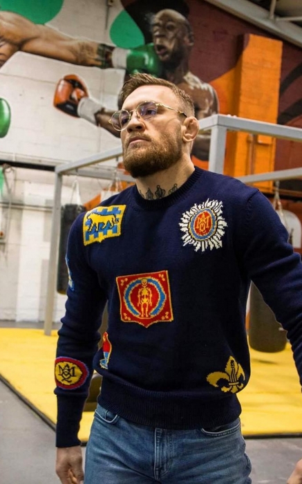 Самые плодотворные отношения у Конора сложились с брендом Gucci — он составляет большую часть его гардероба. У спортсмена есть принтованные кепки, иконические кроссовки с полосками, олимпийка с тигром и меховые бабуши из последних коллекций. МакГрегора называют негласным амбассадором дома наряду с Джаредом Лето и Элтоном Джоном, но в отличие от них гордый боец подарков от дизайнера бренда Алессандро Микеле не принимает. Он обожает ходить по магазинам сам и спускать заработанные миллионы на вещи, которые раньше видел только по телевизору, а потом хвастаться покупками перед противниками и бросать фразы вроде «Я — сутенер в белой шубе от Gucci!» (прямая цитата с пресс-конференции 2016-го года — Прим.ред.).