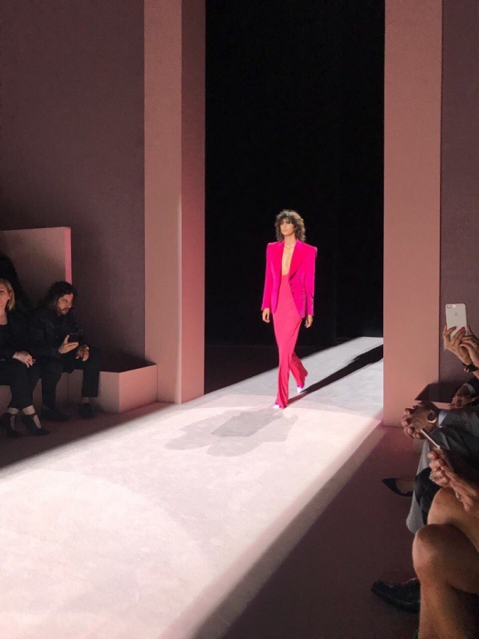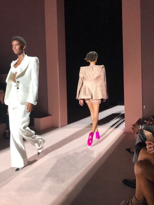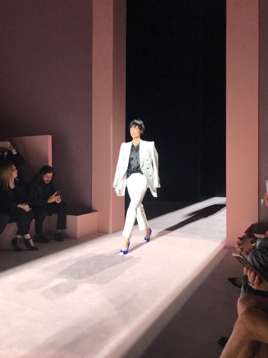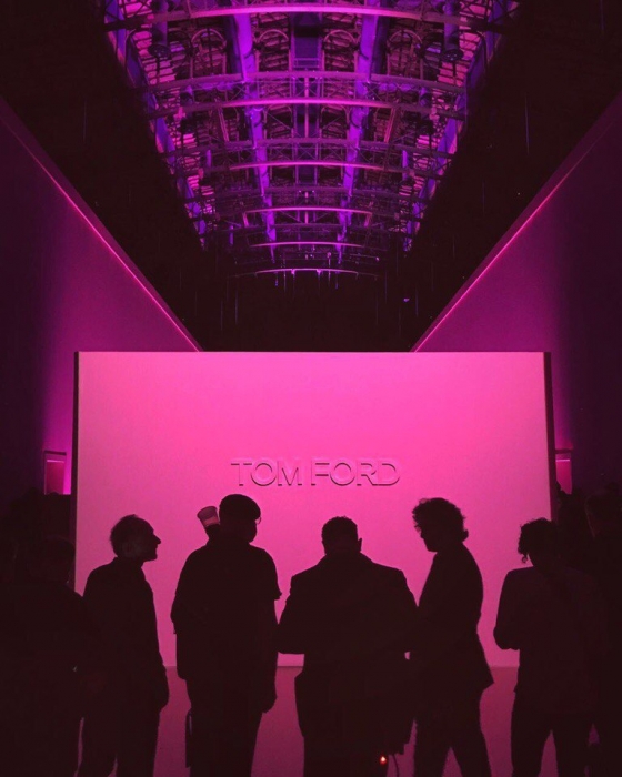 На показ нас с подругой пригласила Нора — прекрасная женщина, настоящий трудоголик, одна из первых людей в Tom Ford. Собственно, она и познакомила нас с дизайнером. Он милый, не чопорный в плохом понимании этого слова и очень внимательный к друзьям и клиентам своего модного дома. Перед шоу его команда прислала мне подарок в виде нового парфюма Fucking Fabulous и свечей для дома — не таких fucking fabulous, конечно, но тоже очень приятных. Еще не вышедший в продажу аромат на "пробу" получили всего 100 гостей показа — все надушились и наполнили этим уникальным запахом зал. Полное погружение».