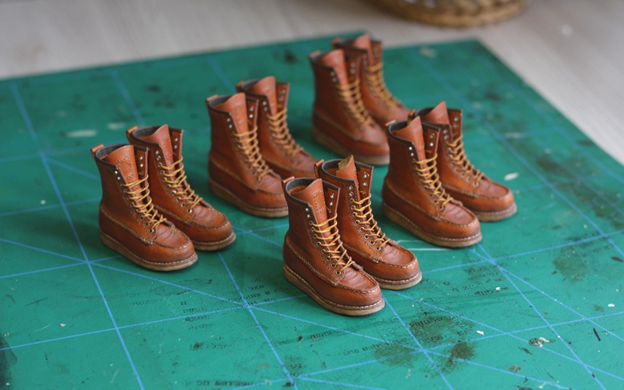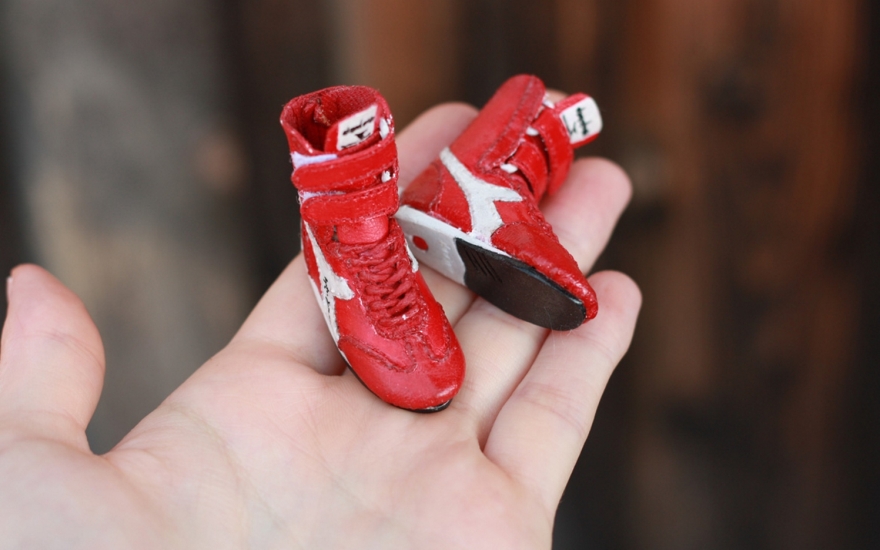 Раньше я делала как самих кукол, так и всю их одежду, а сейчас занимаюсь только изготовлением вещей. За границей это довольно популярное хобби, причем преимущественно мужское: парни коллекционируют героев компьютерных игр или знаменитостей и наряжают. Моя задача — сделать максимально реалистичную копию луков в миниатюре — например, кроссовок Adidas, кед Converse и джинсов Levi's, которые повторяют вещи с экранов и из лукбуков. Для этого я использую деликатные ткани, натуральную кожу и подручные материалы — крошечные металлические трубочки, скрепки и крупные элементы из нейл-арта. На создание обуви уходит от 20 до 30 часов, на сумку или рюкзак —15-20, на текстильных портретных кукол — больше 100 часов: на Джека Воробья, сделанного из полимерной глины, была потрачена вечность — даже побоялась считать!