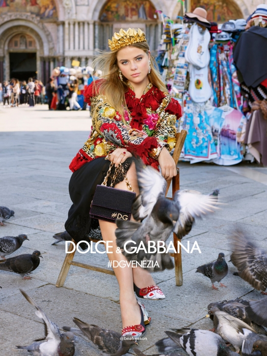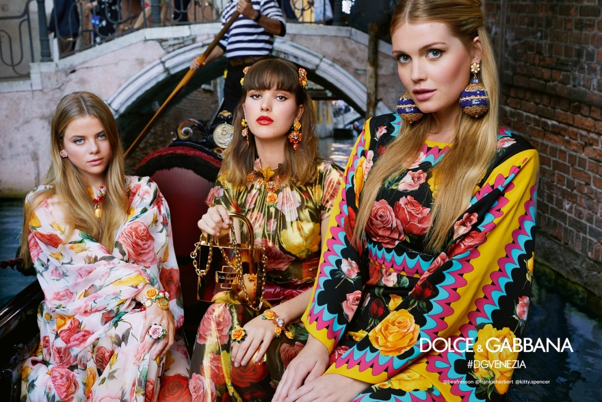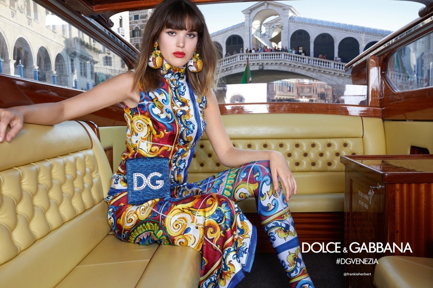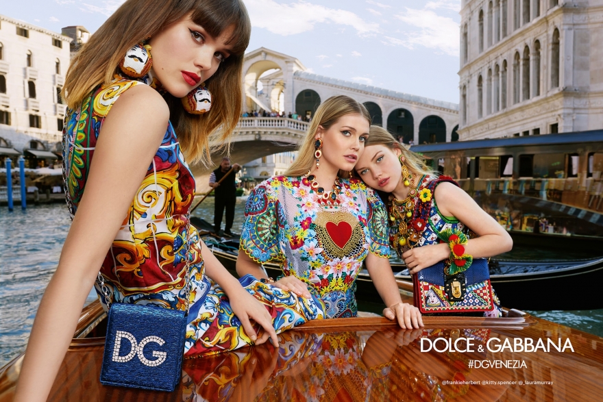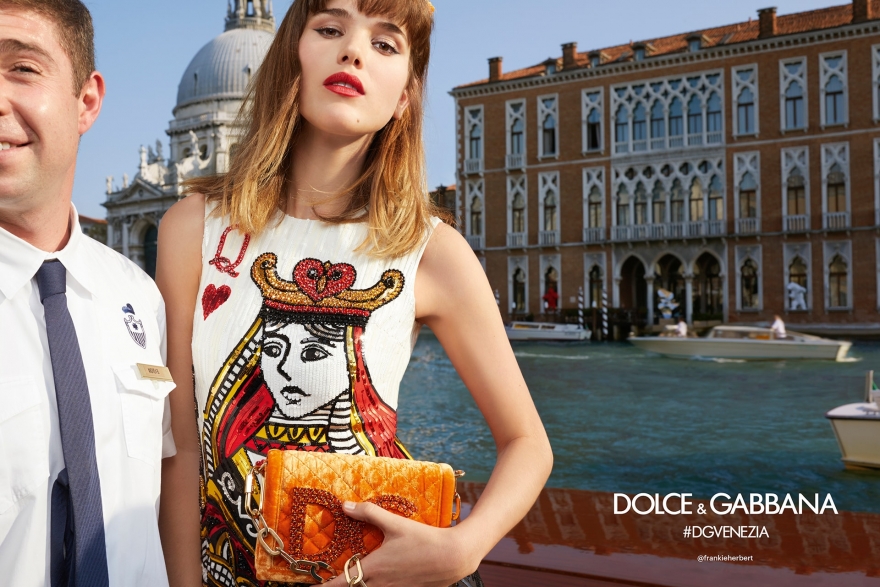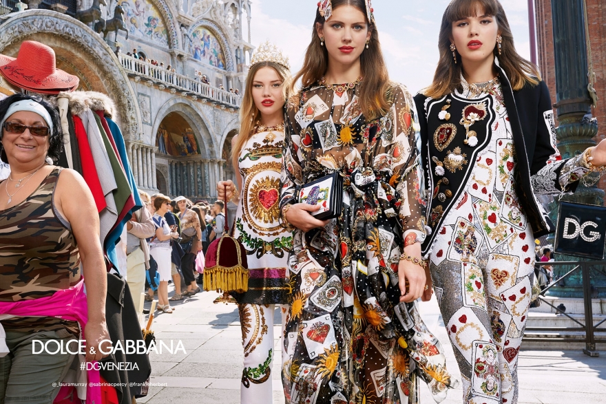Dolce & Gabbana продолжают сочетать несочетаемое — высокую моду и уличные торговые палатки, особ голубых кровей и среднестатистических туристов. В кампейне новой весенне-летней коллекции модный дом показал, что внутри него может произойти все, что угодно. Корсетные платья, «азартные» комбинезоны, сумки-торшеры и клатчи в виде пачки макарон на этот раз рекламируют модели Франки Херберт, Лаура Мюррей и Беа Фрессон, а также племянница принцессы Дианы — леди Китти Спенсер. Они катаются на венецианских гондолах, гоняют голубей на площади Сан-Марко, объедаются пастой и позируют на фоне целующихся прохожих — итальянское безумие и контрасты как они есть.