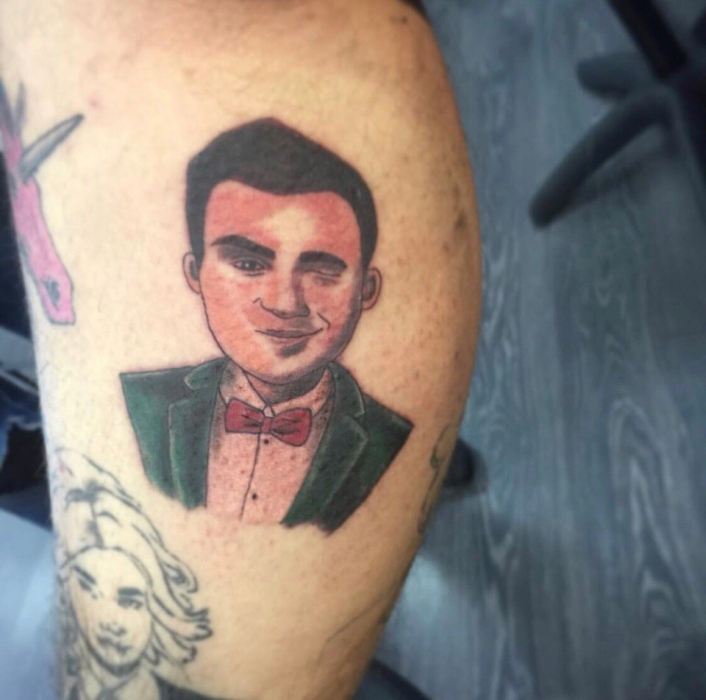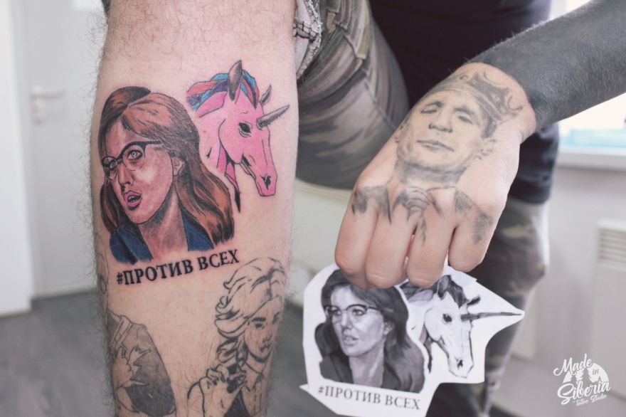 Я живу не в таком большом городе, как Москва или Петербург, где тату-культура распространена и развита. В Красноярске на меня, конечно, реагируют бурно: ровесники хейтят в сети, бабушки перекрещиваются на улице. Татуировки я делаю не ради популярности, но если она пришла, почему бы этим не пользоваться. Я уже и к «Малахову» ездил, и на НТВ — кроме лица, у меня портретами знаменитостей забиты все ноги. На них красуются лица Дианы Шурыгиной, Николая Соболева — первую набил «по приколу», а второго, можно сказать, в благотворительных целях. На съемках передачи «Специальный выпуск с Вадимом Такменевым» Соболев мне сказал: «Надо было меня набить, я — тренд!». А из студии крикнули: «У тебя, Коля, на это не хватит денег». Чтобы Коленька не обижался и не плакал, решил все-таки поместить его фотографию рядом с Шурыгиной. И ни одну из них я сводить не планирую.
