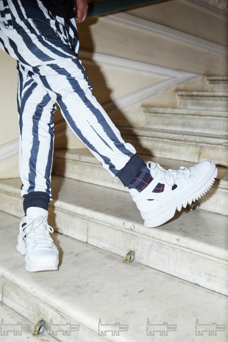 На Денисе: очки Dsquared2, бомбер и брюки от японского бренда Genanx, футболка от дизайнера с Ибицы, кроссовки Camper