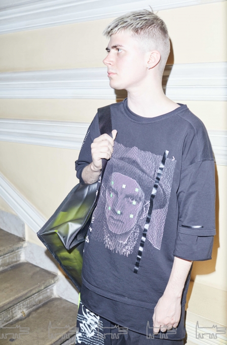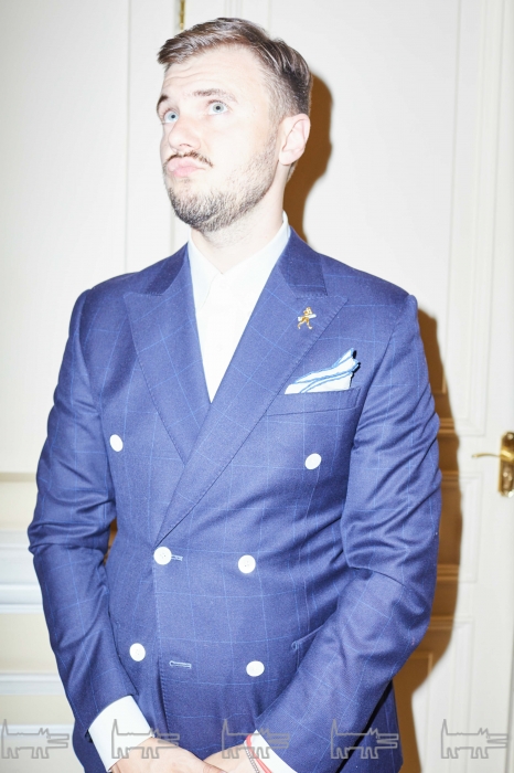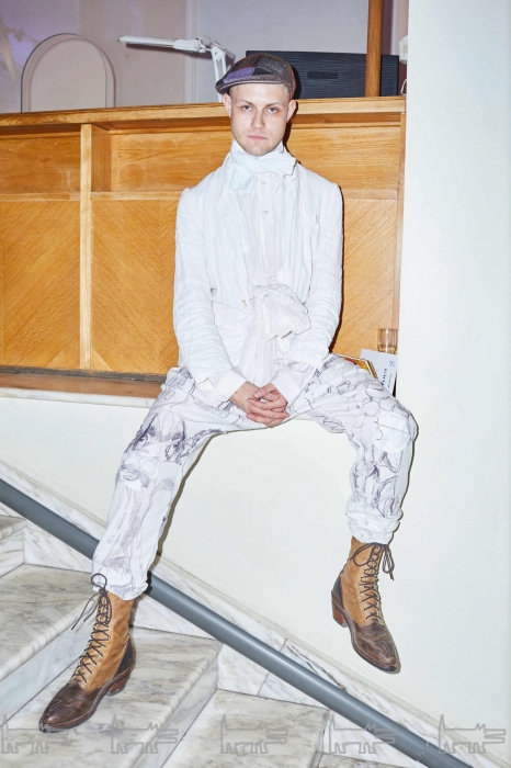 На Андрее: костюм Dries Van Noten, сорочка Leonid Alekseev, бант Lena Maksimova, кепка «с помойки»