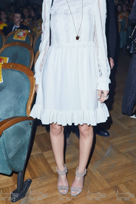 На Ксении: платье Alexander McQueen (ДЛТ), туфли Valentino (tsum.ru)