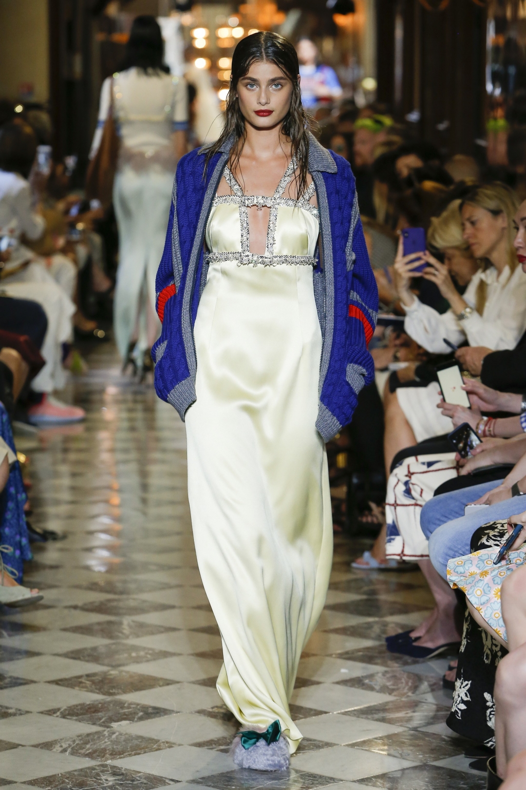 Место рядом с Адвоа Абоа, Тейлор Хилл, Адрианой Лимой, Джорджией Мэй Джаггер, Кайей Гербер и Наоми Кэмпбелл заняли актрисы Хлоя Севиньи и Кейт Босуорт, звезда «Игры Престолов» Гвендолин Кристи, редактор и дизайнер Алекса Чанг, а также Ума Турман, которую сначала в очках и пальто в пол никто не узнал (или не поверил). С момента прошлого осенне-зимнего шоу, которое открывала Эль Фаннинг, Miu Miu явно расширил пул друзей-знаменитостей, а значит, солд-аут resort-коллекции уже сейчас обеспечен.