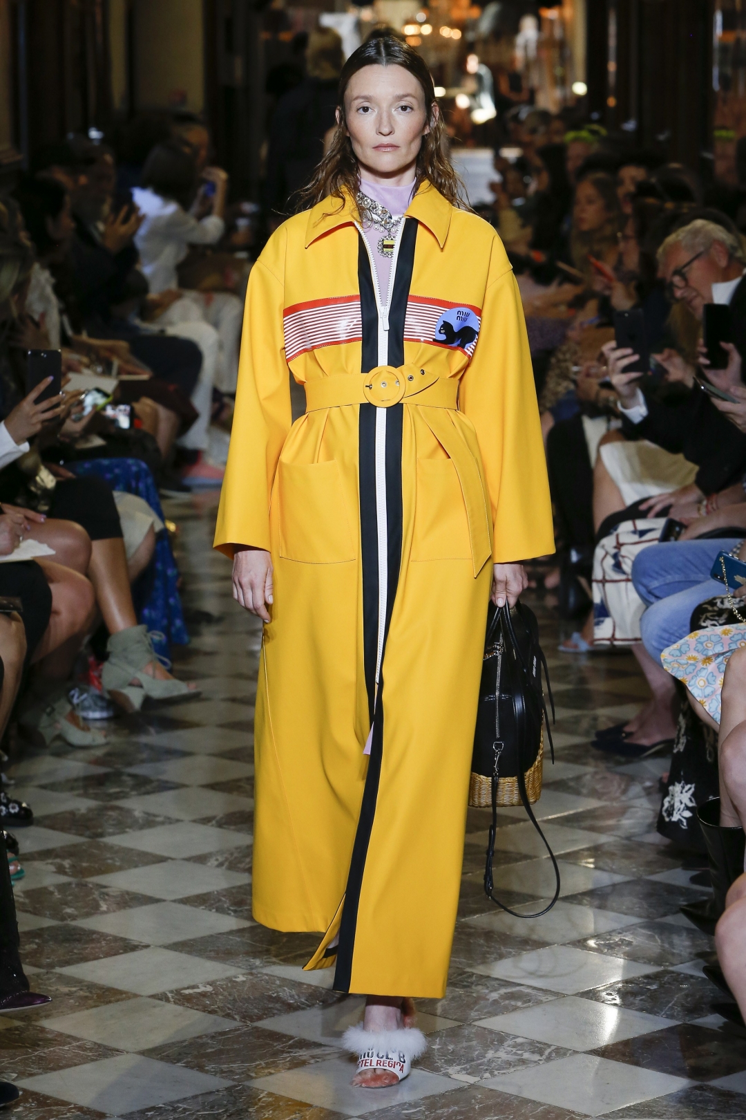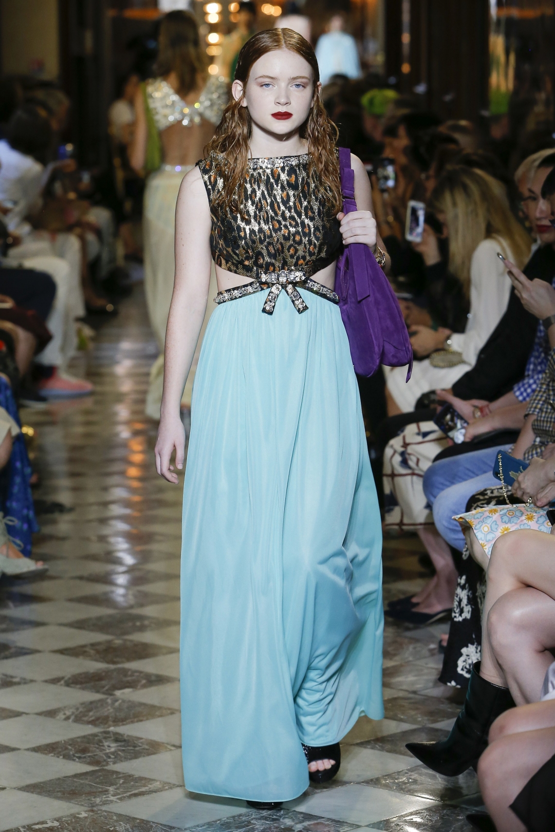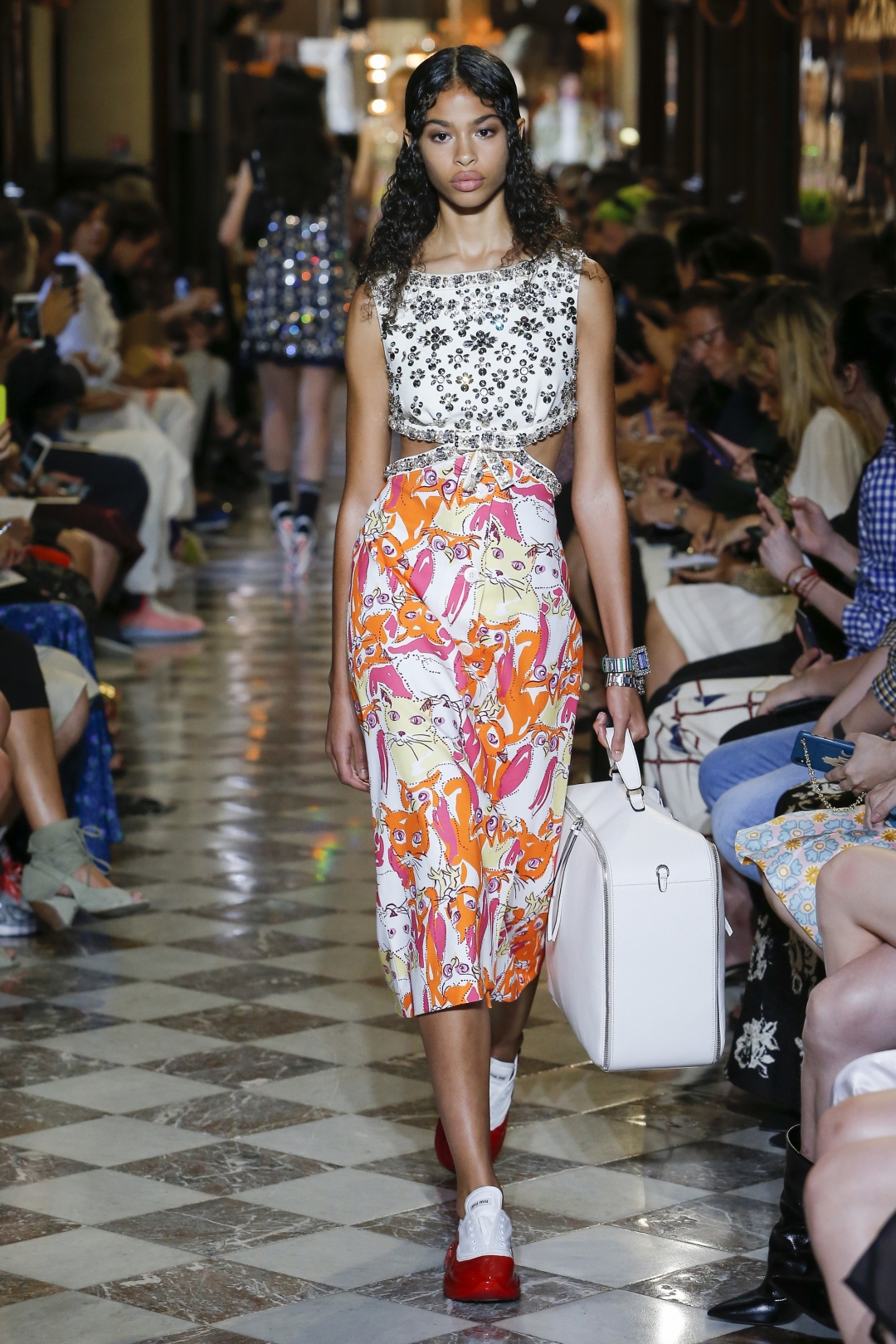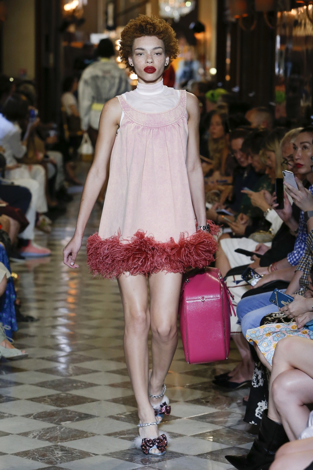 Оказалось, что неспроста: Миучча Прада соединила в коллекции все стереотипы о девушках легкого поведения. Будуарные халаты, страусиные перья, длинные перчатки, леопардовые платья, просвечивающее нижнее белье и серебристые босоножки на высокой платформе чередовались одни за другими или собирались в единый тотал-лук. Назвать его пошлым получалось с натяжкой: где-то спесь сбивали вязаные кардиганы, где-то — школьные гольфы, а где-то — юбки с котятами, но главную роль в разрушении стереотипов сыграли звездные гости, которые в этот раз не только сидели во фронт-роу, но и ходили по подиуму.