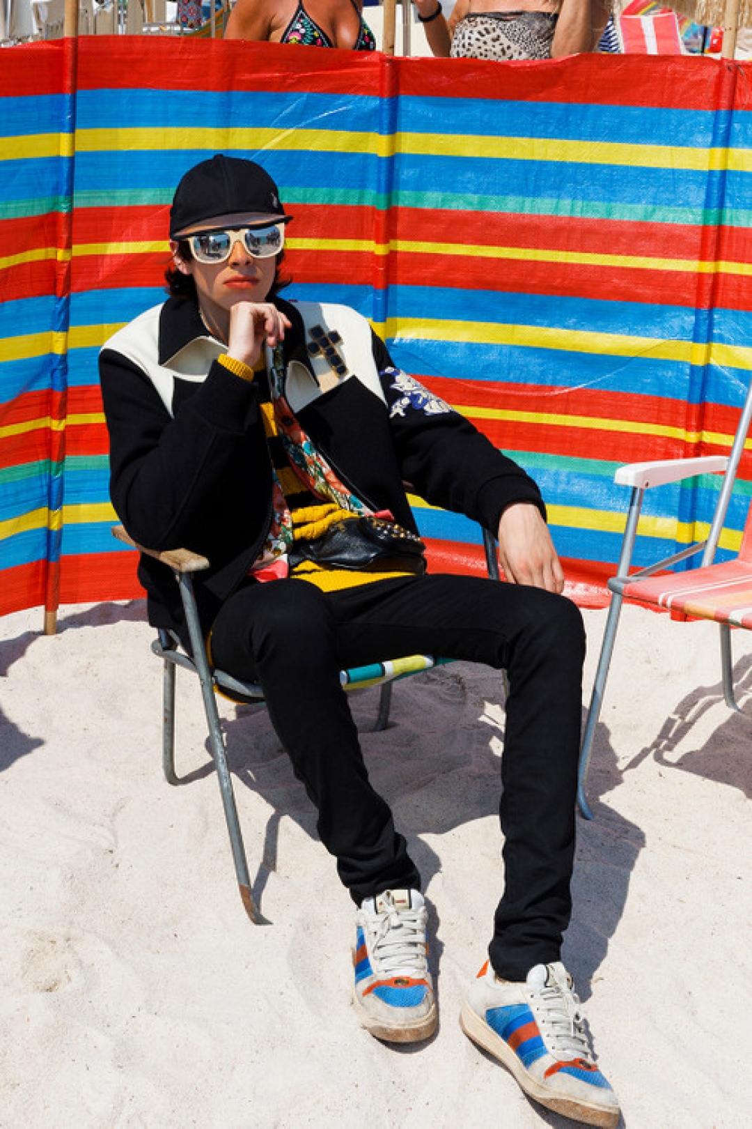 Лукбук можно повесить над рабочим столом и скрашивать им отсутствие отпуска. В нем есть все характерное для отдыха в Сицилии или Сочи — мужчины, переборщившие с загаром, женщины, прогуливающиеся по пляжу на каблуках, голуби, ворующие остатки пикника, и собаки, нарушающие спокойствие. Большинство вещей из лукбука (кроме, разумеется, гигантского мороженного и надувного матраца) можно будет купить уже в этом октябре.