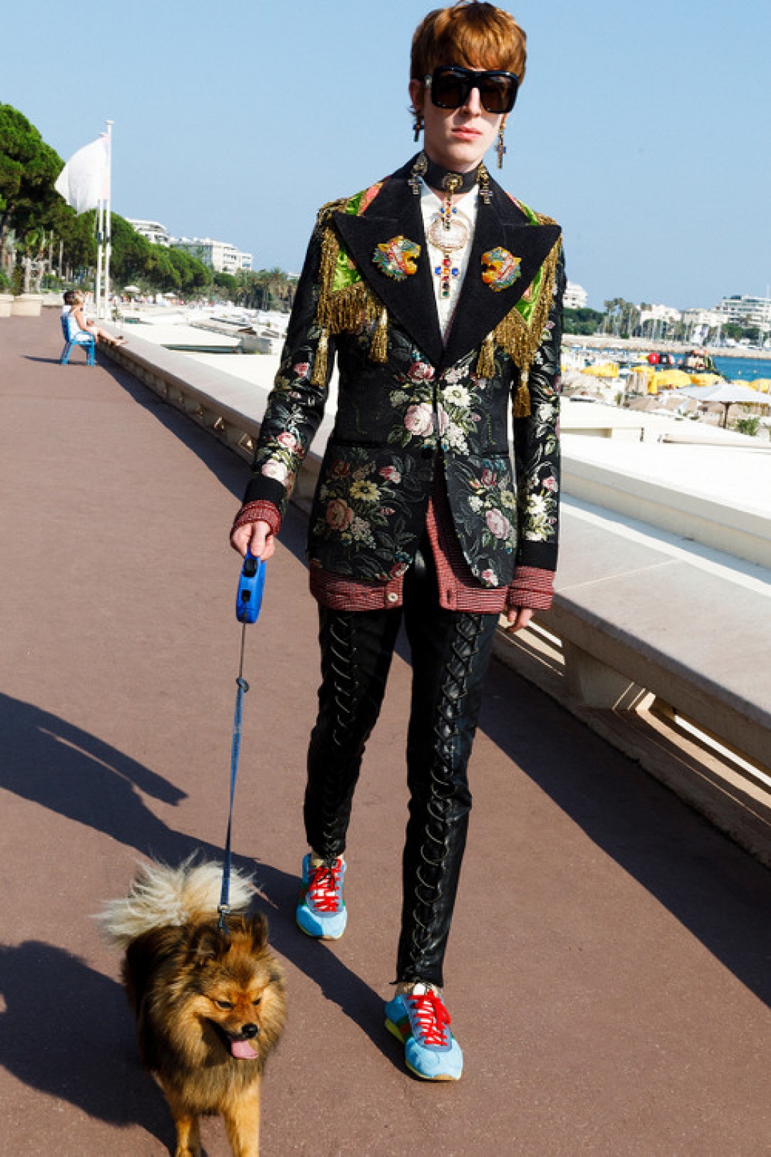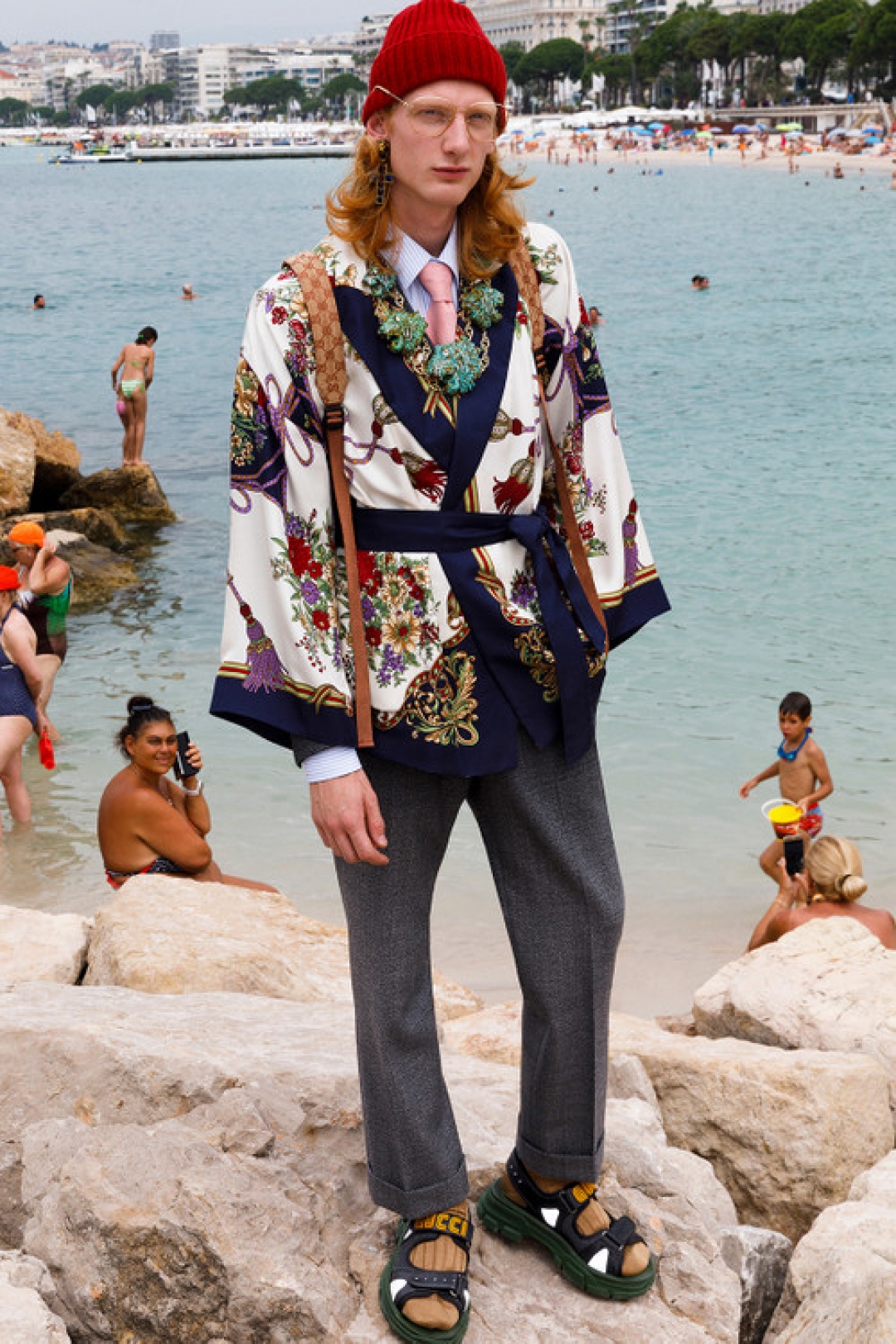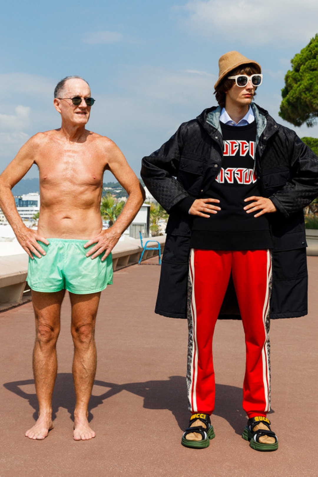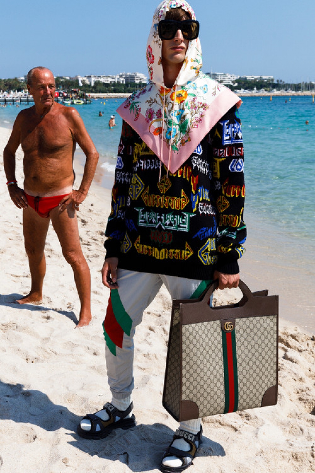 Gucci выпустили лукбук мужской части круизной коллекции — бренд показал ее в мае этого года на кладбище родного города Винсента Ван Гога — Арля. Несмотря на то, что идеолог Мартин Парр снимал его в Каннах, на фотографиях — истинно петербургская разница в одежде в жару. Модели позируют в парках, свитшотах, рубашках и шерстяных пиджаках, а отдыхающие лазурного берега — в одних плавках.