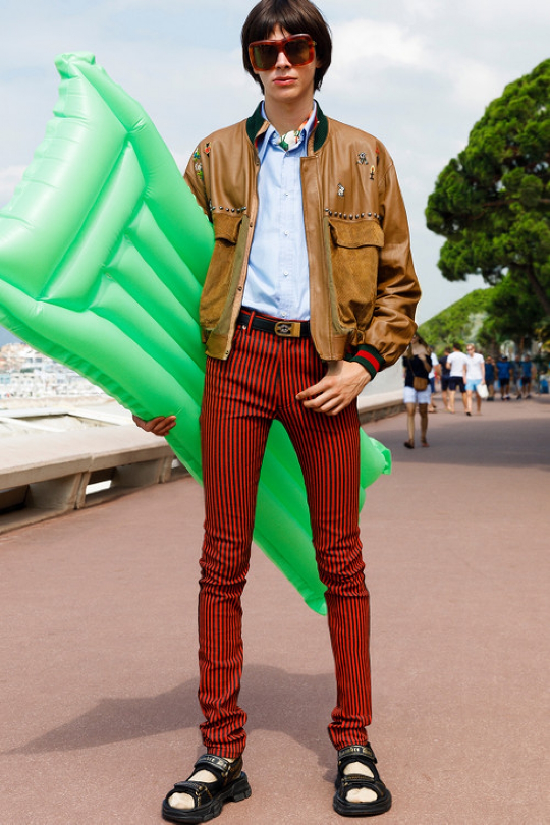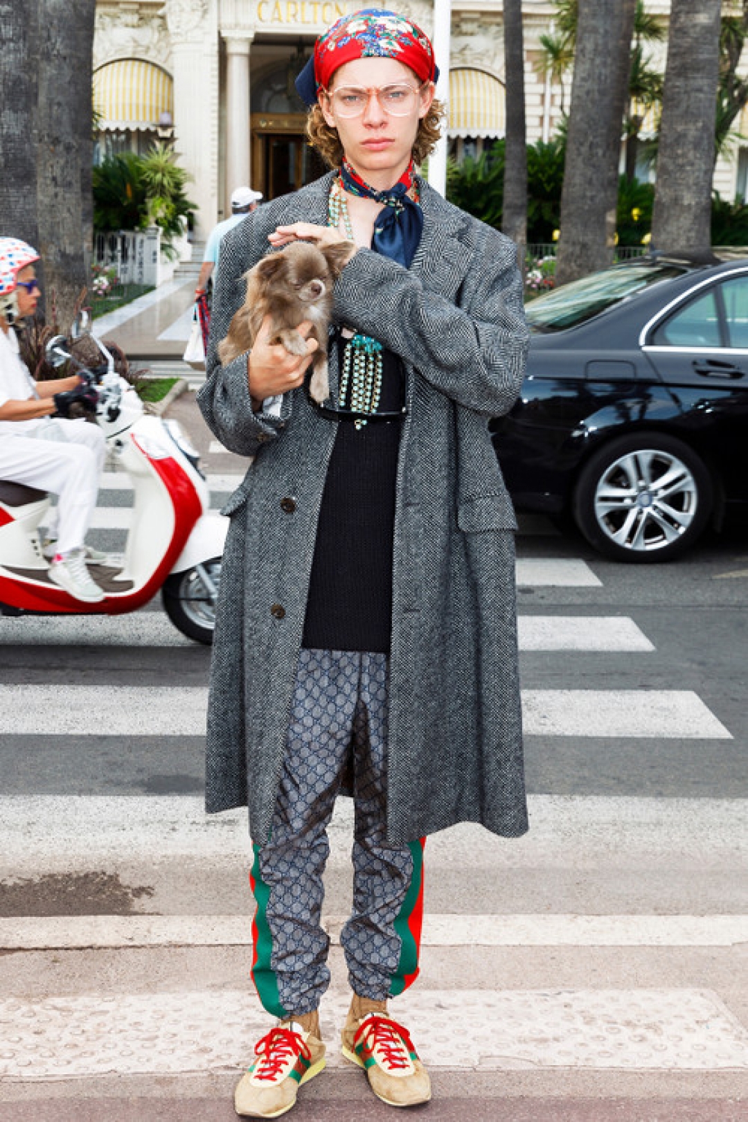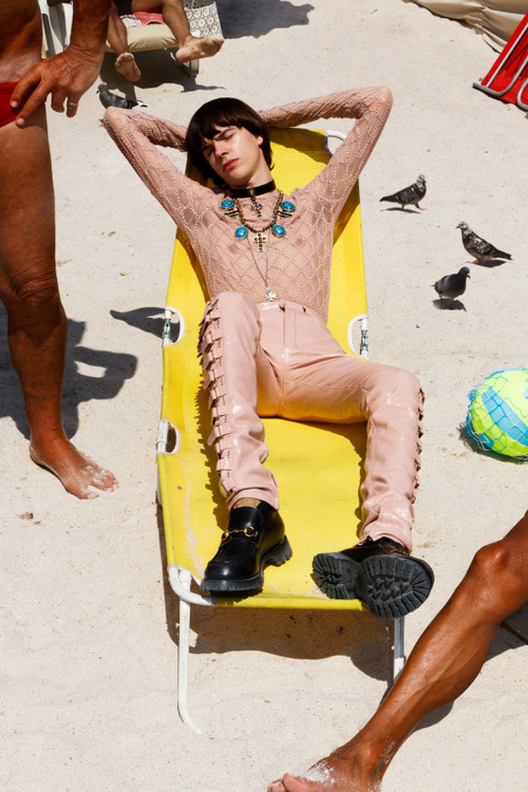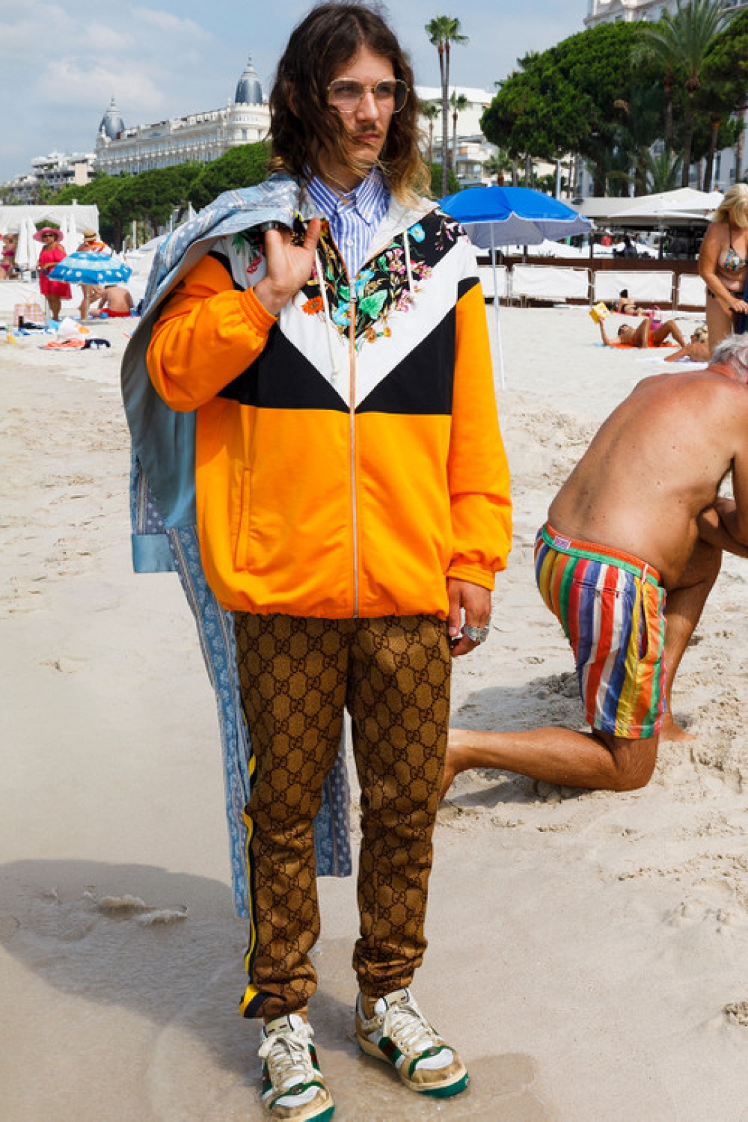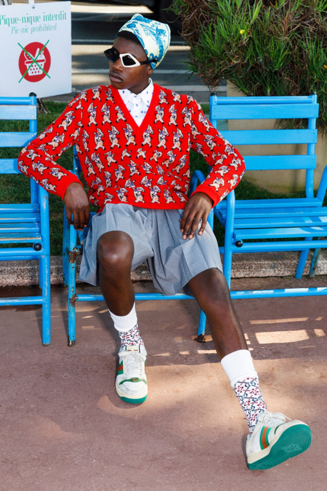 Gucci выпустили лукбук мужской части круизной коллекции — бренд показал ее в мае этого года на кладбище родного города Винсента Ван Гога — Арля. Несмотря на то, что идеолог Мартин Парр снимал его в Каннах, на фотографиях — истинно петербургская разница в одежде в жару. Модели позируют в парках, свитшотах, рубашках и шерстяных пиджаках, а отдыхающие лазурного берега — в одних плавках.
