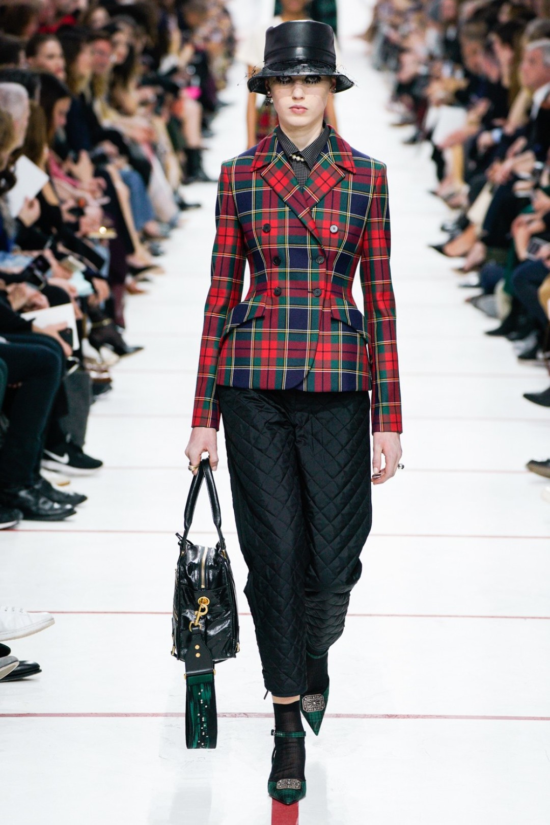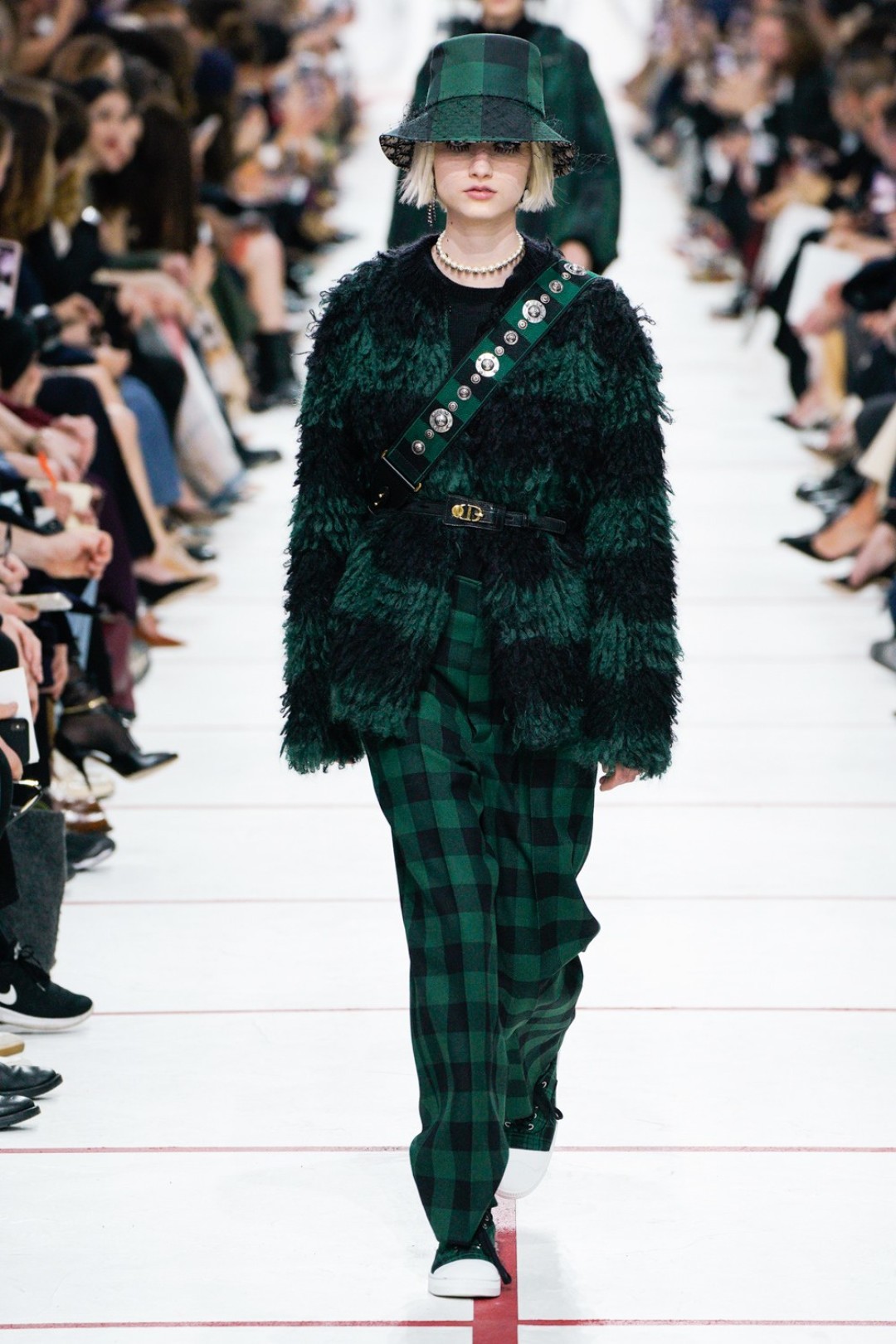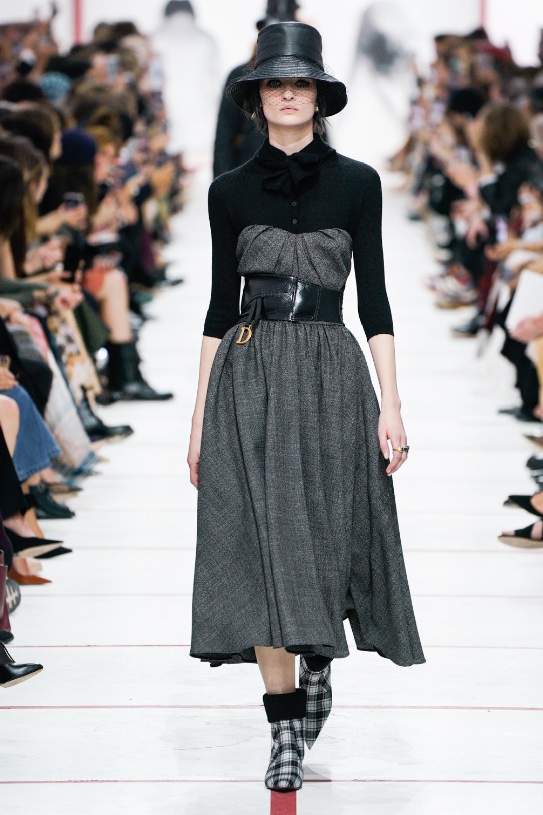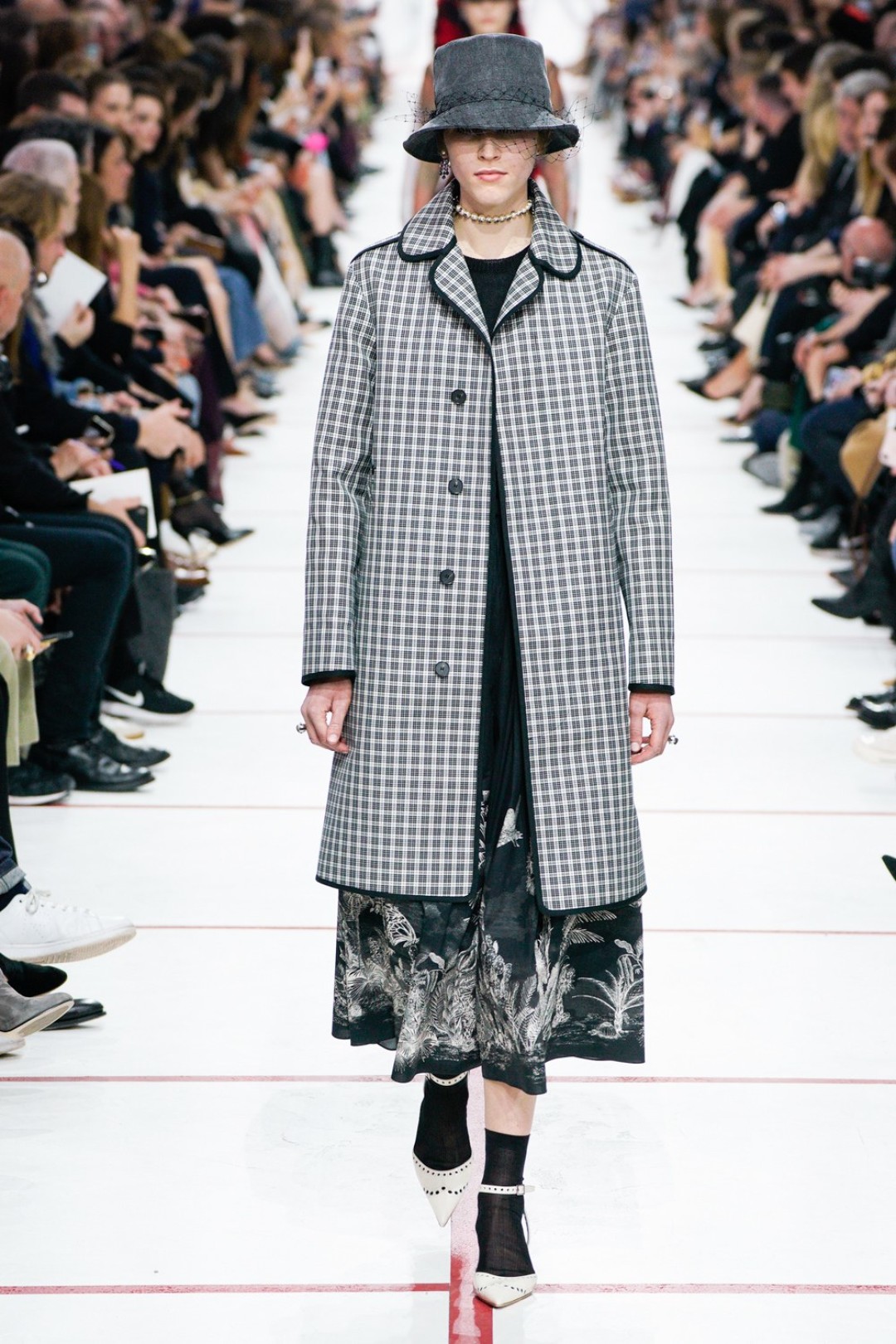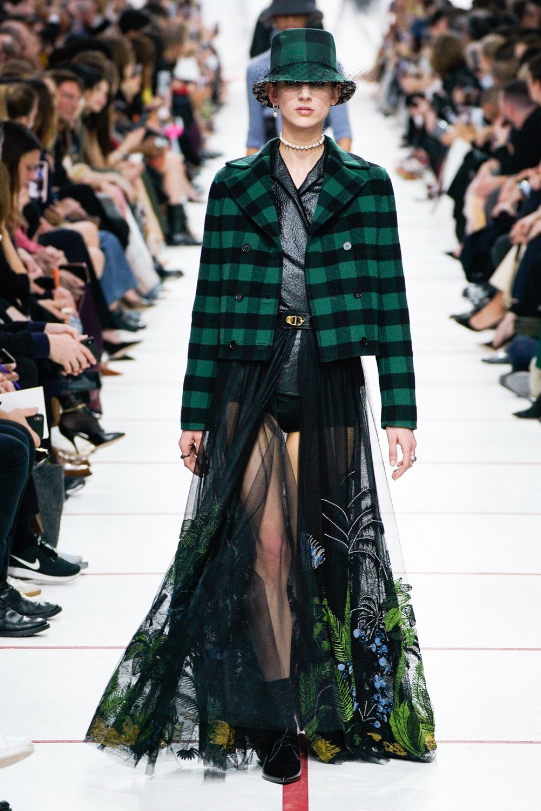 В новом сезоне Мария Грация нафантазировала стеганые юбки, перетянутые «поясной» версией сумки Saddle, клетчатые анораки, стилизованные панамами с вуалью из сетки, и кашемировые свитеры пастельных тонов, надетые на платья с вышивкой тропических мотивов. При подготовке осенне-зимней коллекции дизайнер думала о скончавшемся Карле Лагерфельде, с которым познакомилась в Fendi в возрасте 25 лет, а также о том, как он мастерски интерпретировал ДНК сразу трех модных брендов. Дизайнер взяла за основу коллекции главный код Christian Dior — романтический силуэт из 50-х, замешав его с еще одной страстью основателя бренда — Англией. Кристиан Диор, по его собственным словам, «любил английские традиции, английскую вежливость и английскую архитектуру», а еще — наряжать английских принцесс — например, принцессу Маргарет, чей портрет в дизайнерском платье озаглавил выставку «Christian Dior: Designer of Dreams» в Музее Виктории и Альберта.