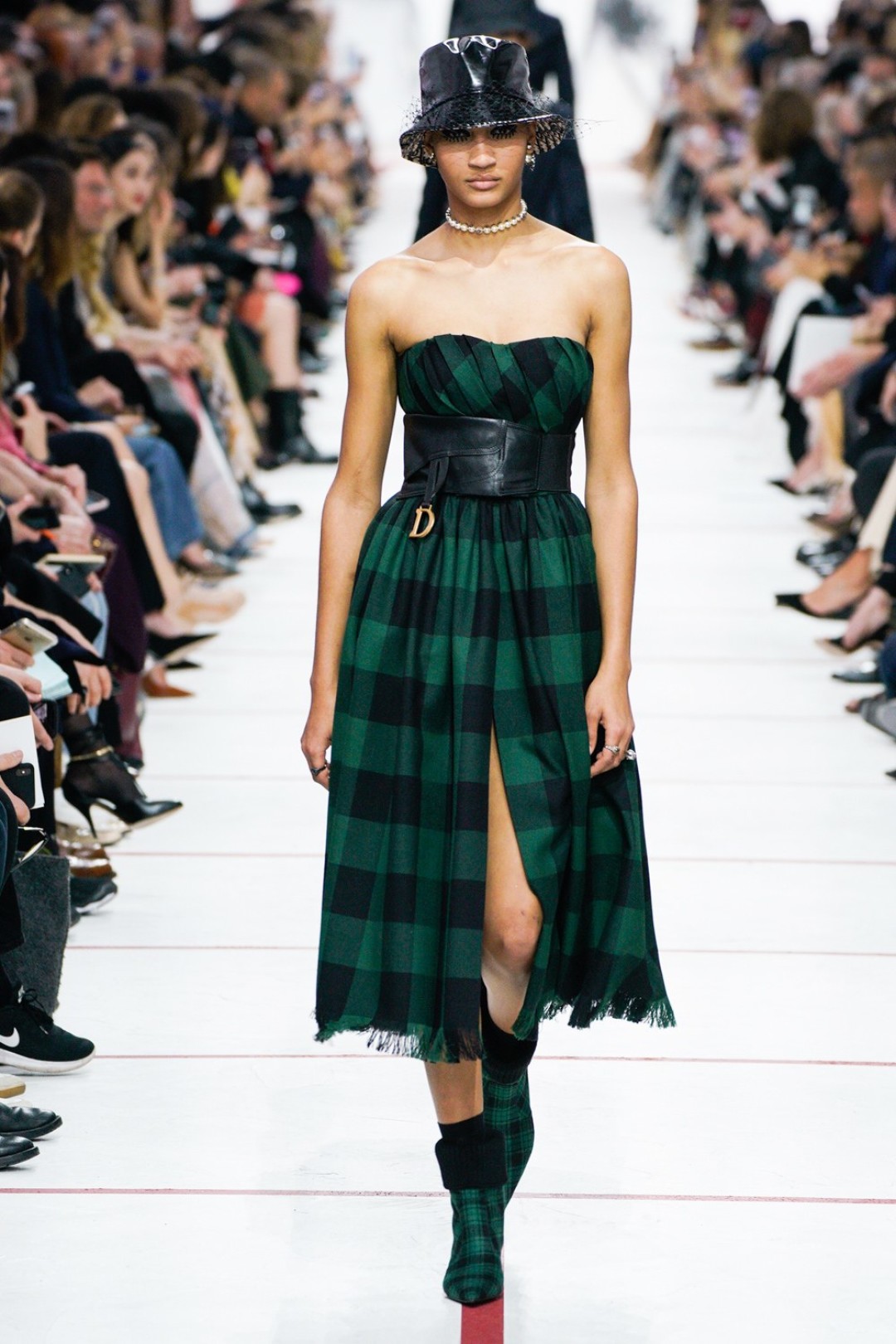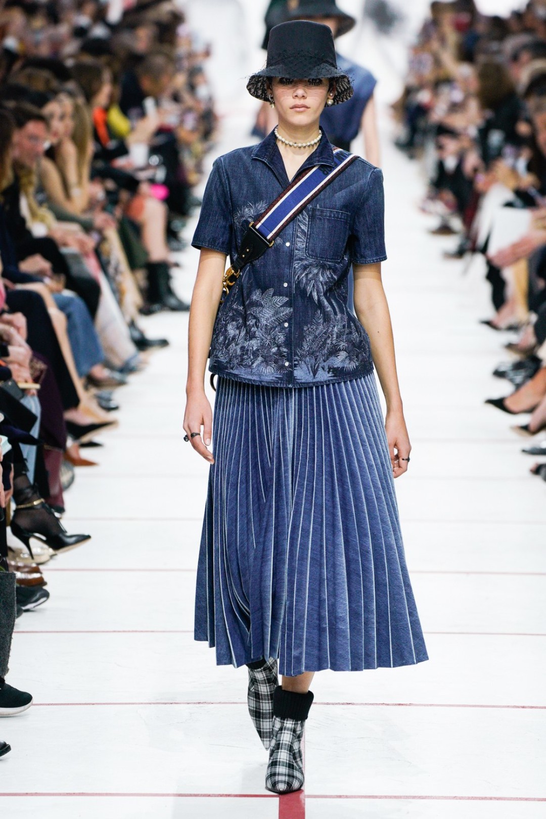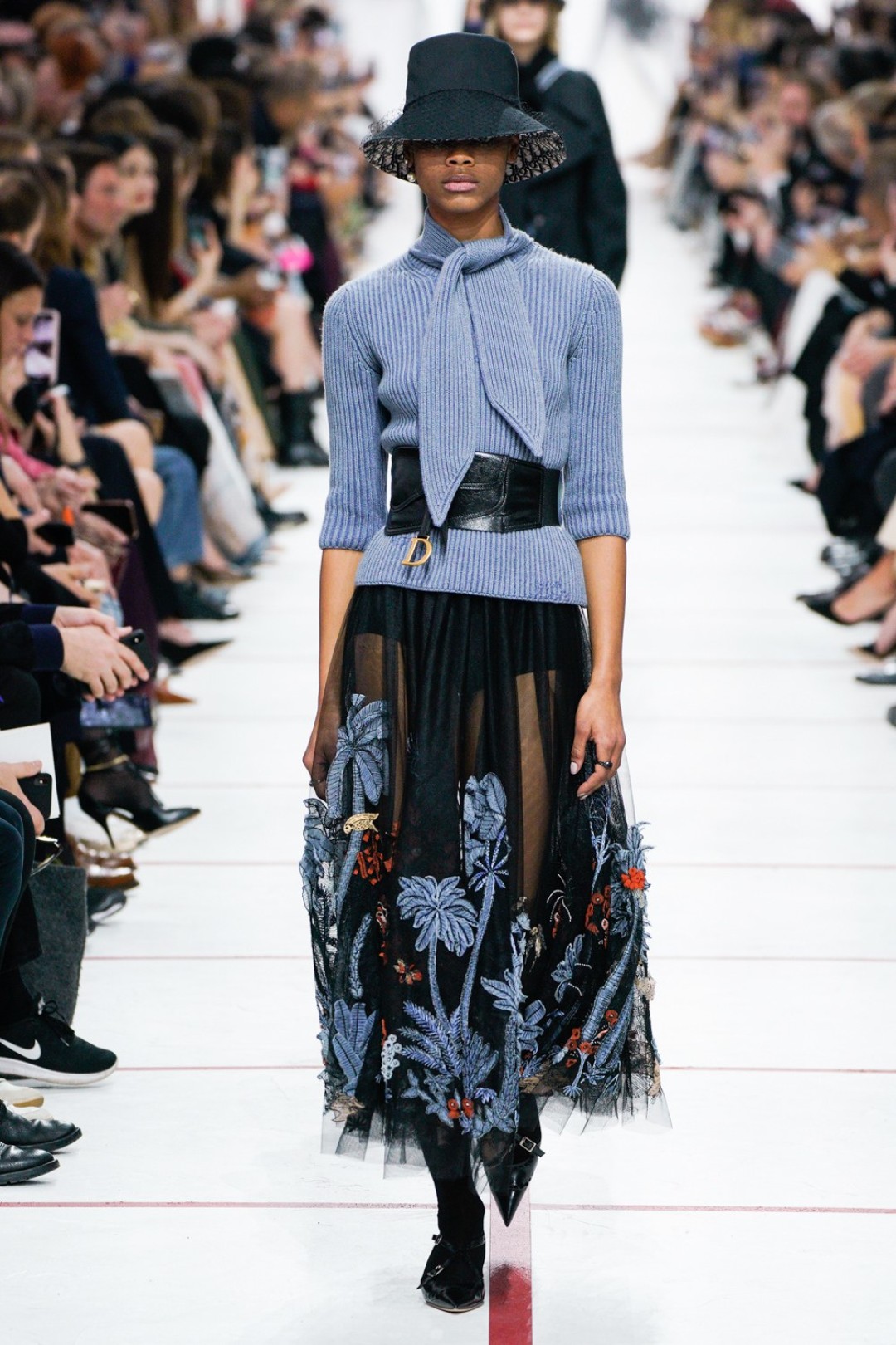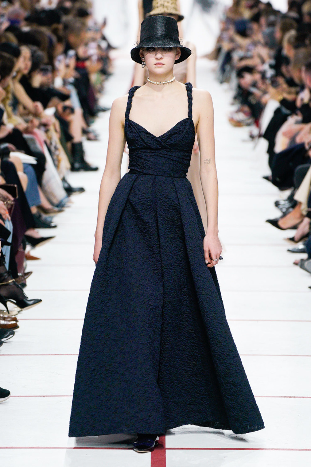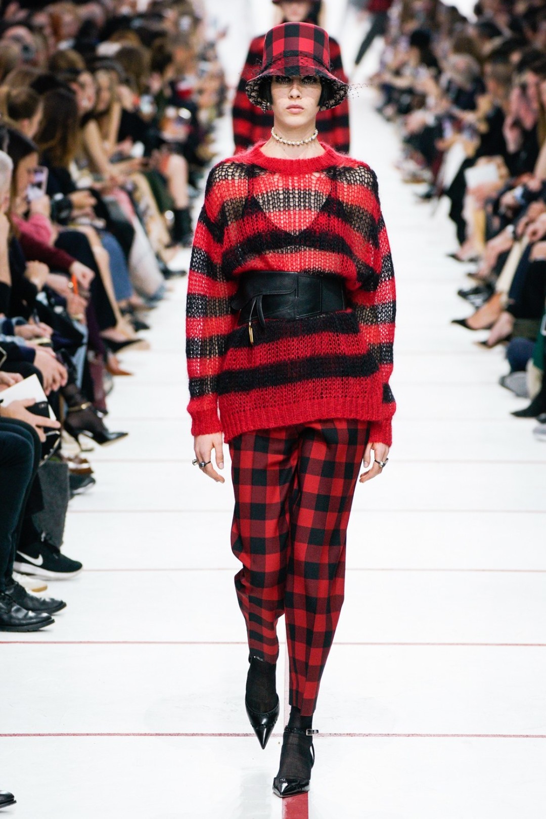 В новом сезоне Мария Грация нафантазировала стеганые юбки, перетянутые «поясной» версией сумки Saddle, клетчатые анораки, стилизованные панамами с вуалью из сетки, и кашемировые свитеры пастельных тонов, надетые на платья с вышивкой тропических мотивов. При подготовке осенне-зимней коллекции дизайнер думала о скончавшемся Карле Лагерфельде, с которым познакомилась в Fendi в возрасте 25 лет, а также о том, как он мастерски интерпретировал ДНК сразу трех модных брендов. Дизайнер взяла за основу коллекции главный код Christian Dior — романтический силуэт из 50-х, замешав его с еще одной страстью основателя бренда — Англией. Кристиан Диор, по его собственным словам, «любил английские традиции, английскую вежливость и английскую архитектуру», а еще — наряжать английских принцесс — например, принцессу Маргарет, чей портрет в дизайнерском платье озаглавил выставку «Christian Dior: Designer of Dreams» в Музее Виктории и Альберта.