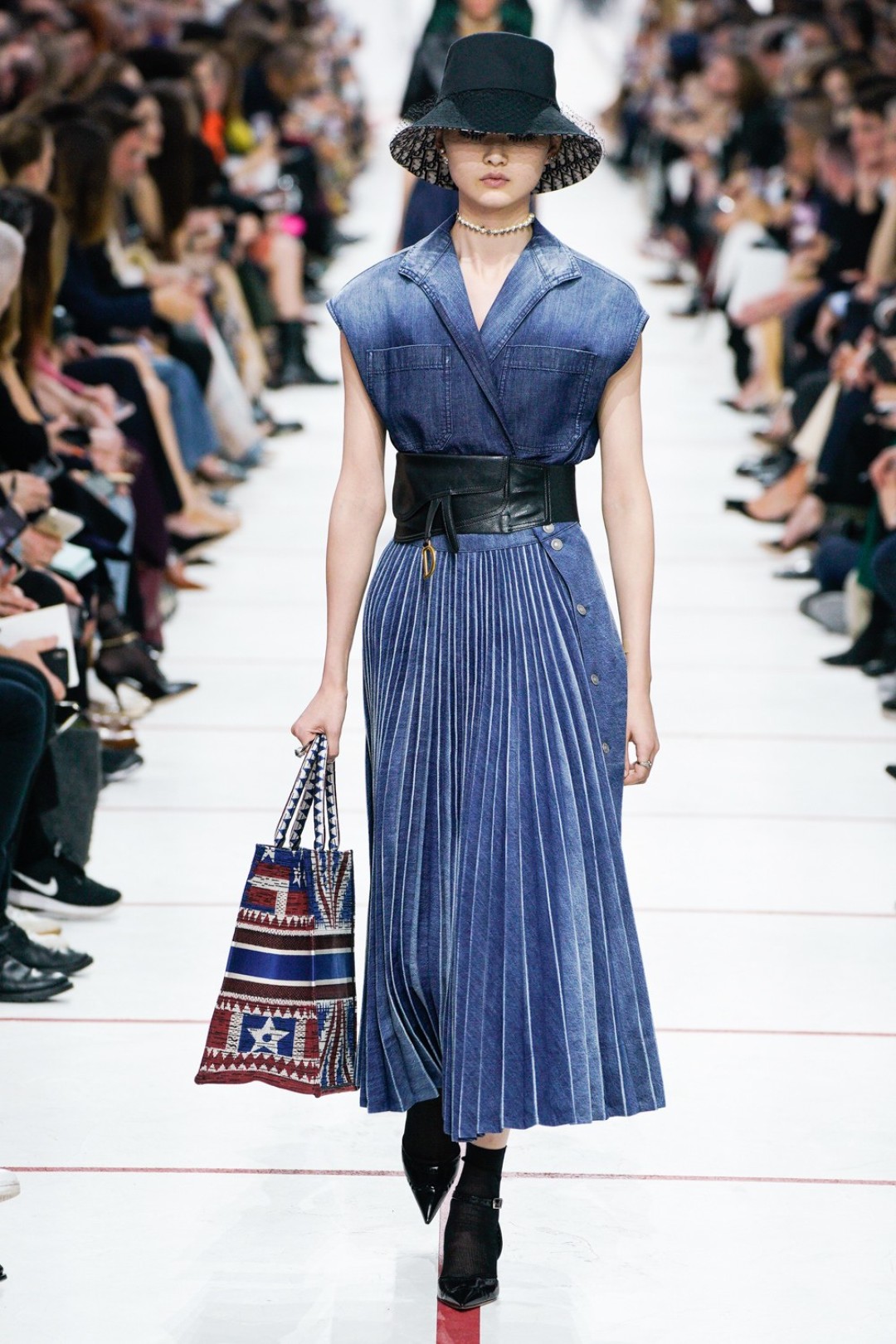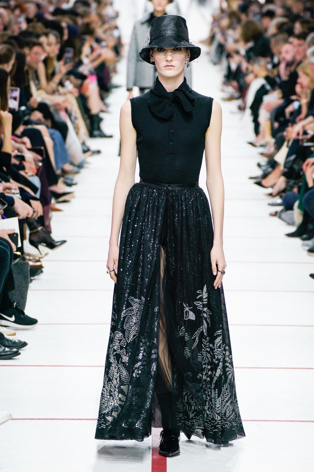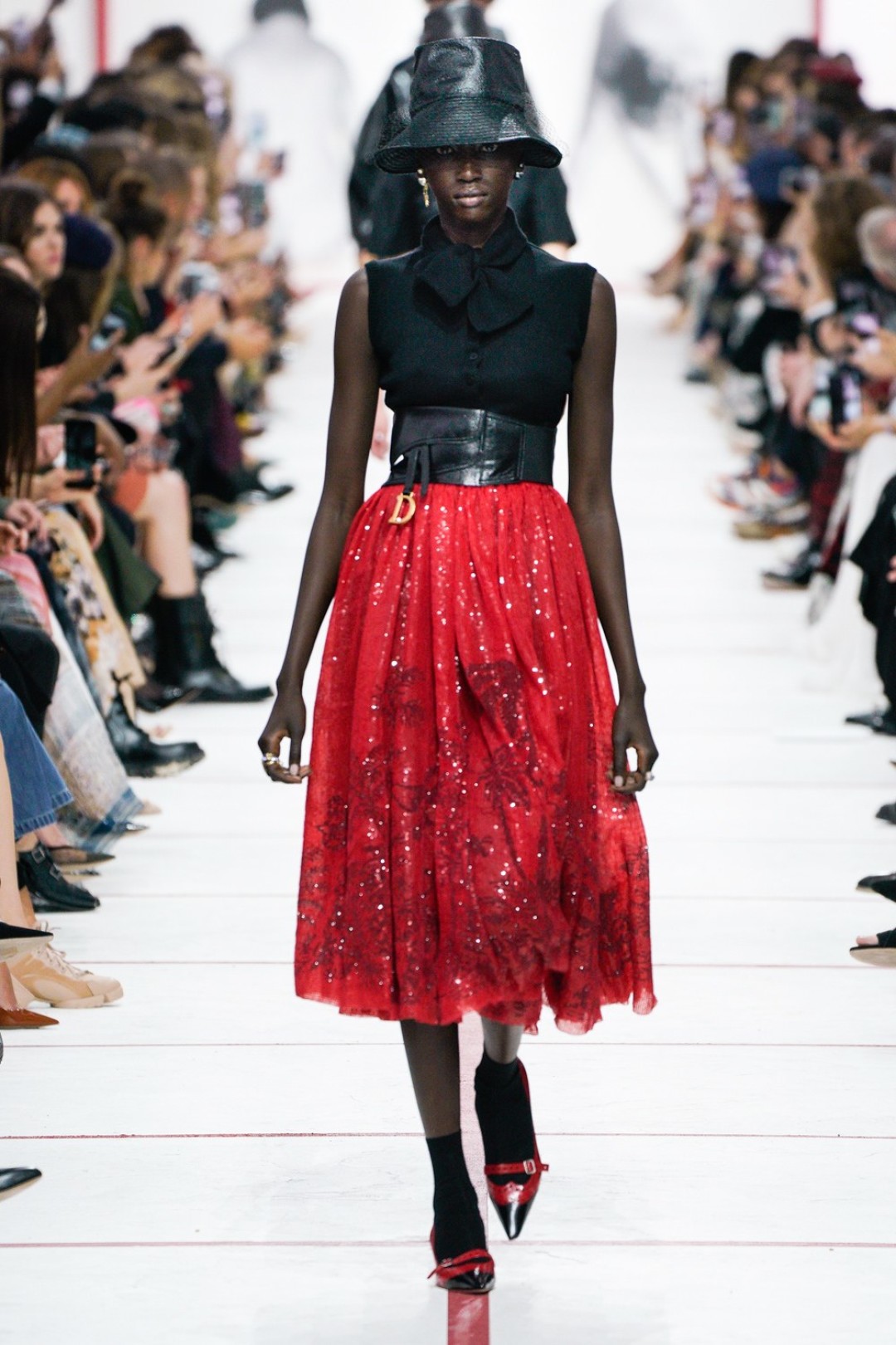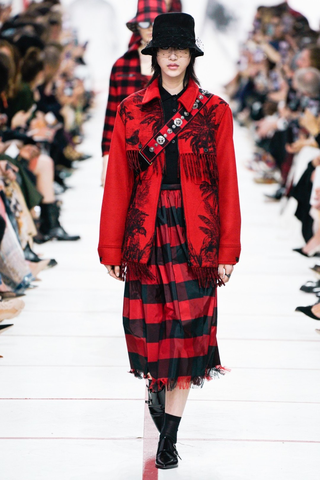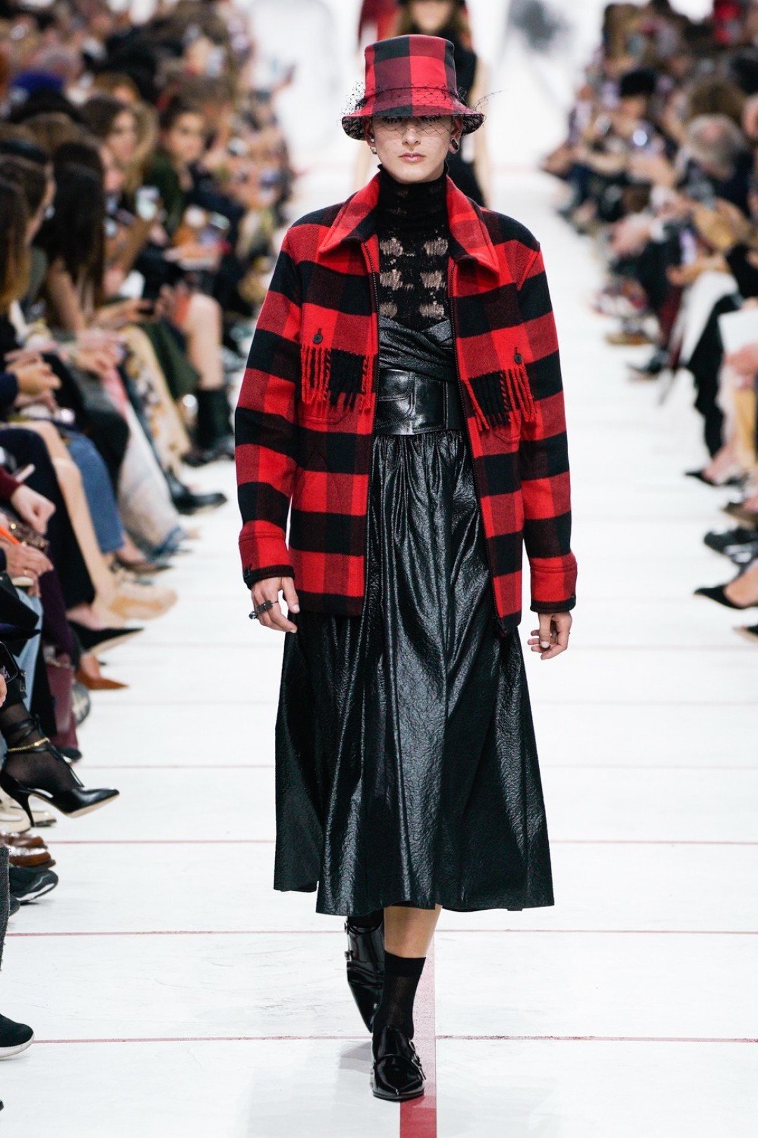 В новом сезоне Мария Грация нафантазировала стеганые юбки, перетянутые «поясной» версией сумки Saddle, клетчатые анораки, стилизованные панамами с вуалью из сетки, и кашемировые свитеры пастельных тонов, надетые на платья с вышивкой тропических мотивов. При подготовке осенне-зимней коллекции дизайнер думала о скончавшемся Карле Лагерфельде, с которым познакомилась в Fendi в возрасте 25 лет, а также о том, как он мастерски интерпретировал ДНК сразу трех модных брендов. Дизайнер взяла за основу коллекции главный код Christian Dior — романтический силуэт из 50-х, замешав его с еще одной страстью основателя бренда — Англией. Кристиан Диор, по его собственным словам, «любил английские традиции, английскую вежливость и английскую архитектуру», а еще — наряжать английских принцесс — например, принцессу Маргарет, чей портрет в дизайнерском платье озаглавил выставку «Christian Dior: Designer of Dreams» в Музее Виктории и Альберта.