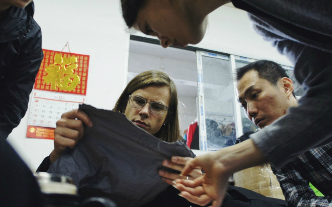 Я работал над брендом один 2,5 года, до 2014-го. На тот момент ужасно устал от Петербурга, от дороговизны тканей, от ступора в развитии бизнеса. Понял, что нужно ехать в Китай — город с развитой легкой промышленностью, технологичными фабриками и с сумасшедшей инфраструктурой. Заранее отшил коллекцию для продаж в Петербурге, нанял для этого двух человек, а сам взял плащи, лекала, рюкзак и уехал.