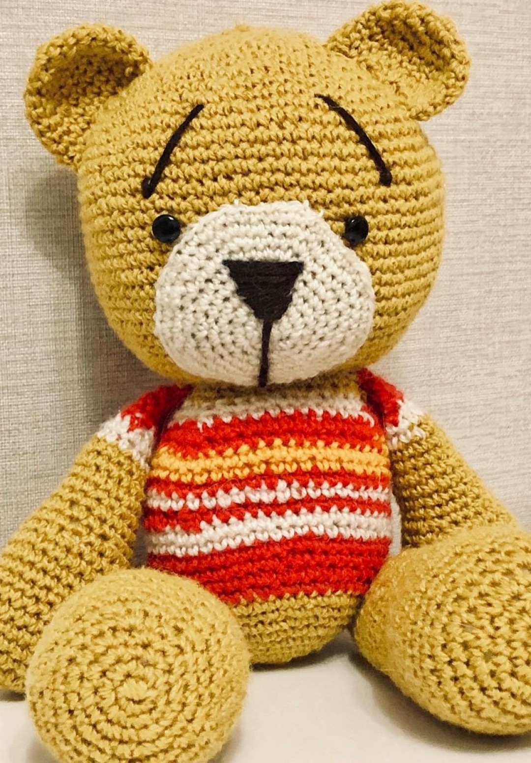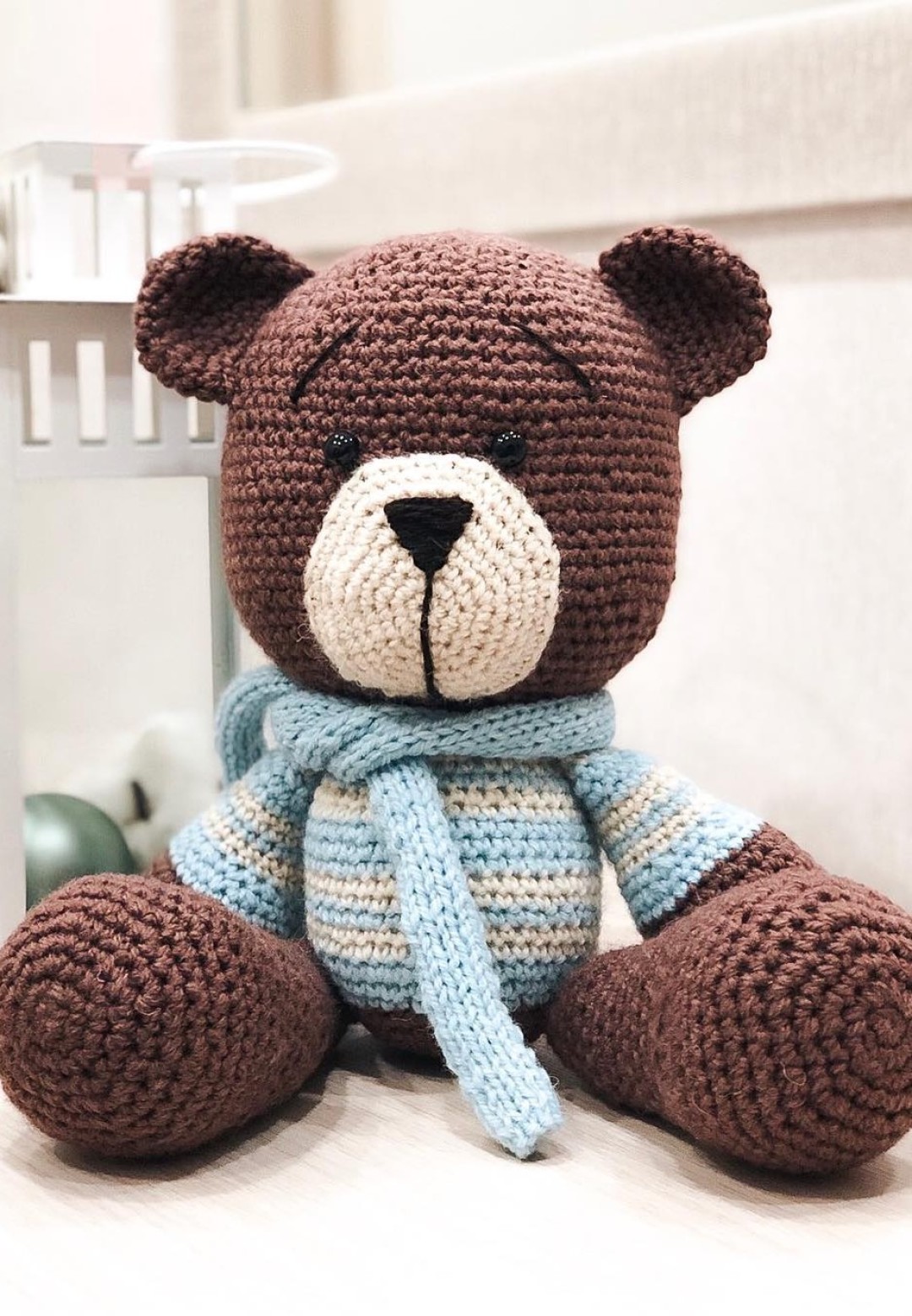 Вязание и вышивание спасли меня и когда родился первый внук — купить что-то в магазинах в то время было практически невозможно. Пеленки, одеяла, комплекты в кроватку — все создавала сама, потом уже для второго внука, а сейчас и для правнучки Алины. Она же получила первого связанного мной мишутку, пример которого я увидела в интернете. Сейчас у меня таких же заказывают в рамках проекта Granny’s: я связала уже 16 или 17 штук. Каждый мишка для меня как ребенок, которого отпускаешь жить в другой дом, но заранее знаешь, что его там будут любить так же сильно!