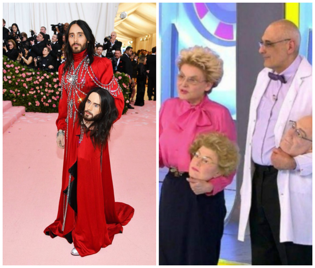 Несмотря на то, что ежегодные шоу-стопперы Бала на него так и не приехали, шуток на тему костюмов гостей в интернете было предостаточно. Кэти Перри, которая вышла на красную дорожку в платье-люстре от бренда Moschino, сравнили с диснеевским персонажем Люмьером, Ким Кардашьян, появившуюся в первом платье Тьери Мюглера за 20 лет, — с французским круассаном, Гарри Стайлса, выбравшего брюки с высокой талией от Gucci, — с Губкой Бобом, а Джареда Лето, который позировал прессе со своей головой в руках, — с Еленой Малышевой (да-да!)