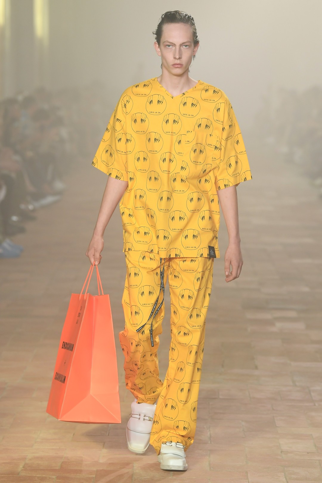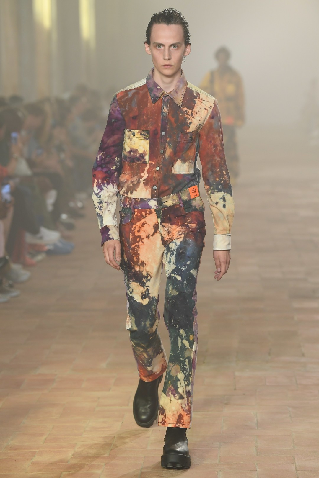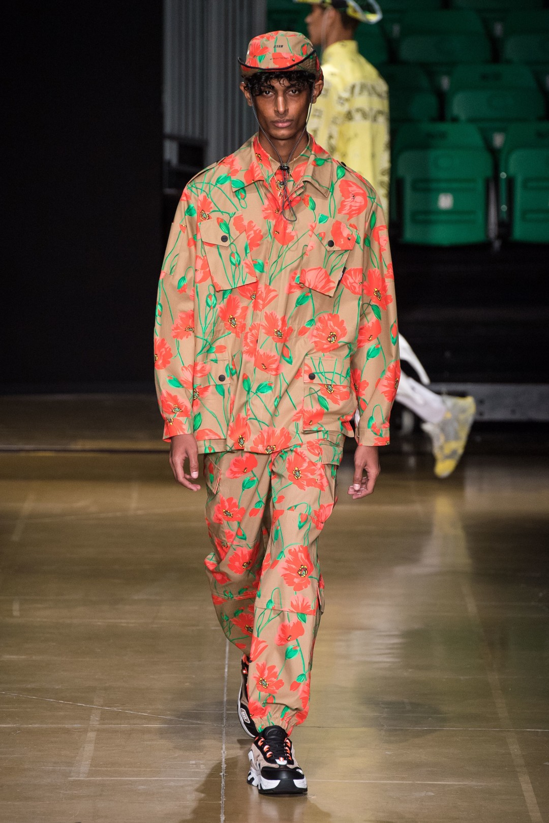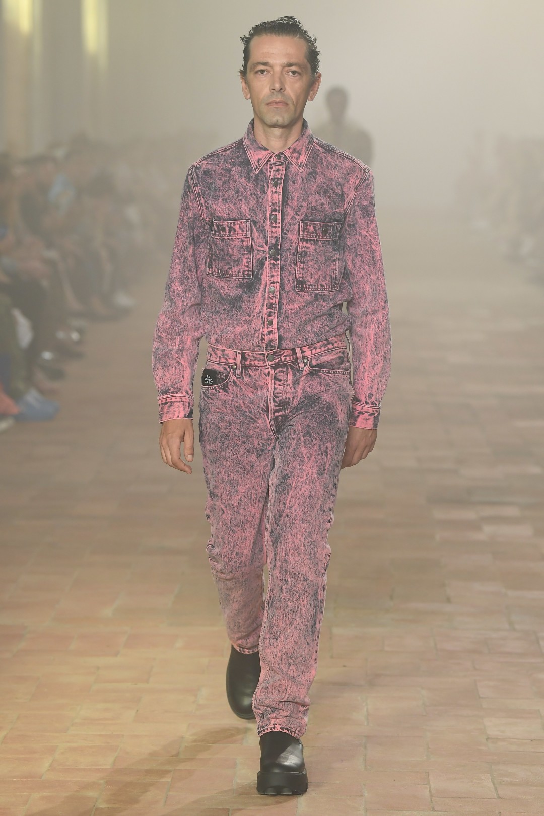 Бывший креативный директор Emilio Pucci Массимо Джорджетти отметил на Pitti Uomo десятилетие собственной марки MSGM. Показ коллекции сезона весна-лето 2020 прошел в спортивном комплексе Nelson Mandela Forum, под крышей которого (при помощи световых спецэффектов) разбили огромный бассейн. Водные узоры дублировались на костюмах из денима, дополненных панамами с приподнятыми полями, футболками с эффектом tie-dye и банданами с узорами пейсли. Из тех же бандан были сделаны рубашки, шорты и поясные сумки — в тон кепок из новой коллаборации MSGM и FILA.
