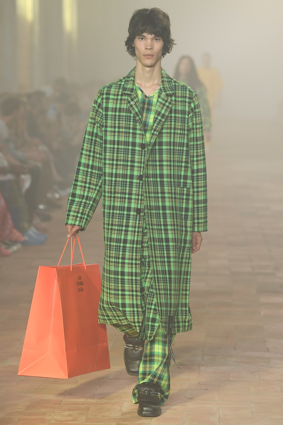 Partner in art Рафа Симонса, который оформлял штаб-квартиры, создавал скульптуры и кастомизировал деним едва ли не для всех проектов бельгийца (Christian Dior, Calvin Klein и Raf Simons), представил на Pitti Uomo собственную марку S.R. Studio. LA. CA. Дебютная коллекция Стерлинга Руби — с костюмами, «заляпанными» краской, пончо, скроенными из разных кусков тканей, и сумками, будто бы спаянными из стали, — поделена на несколько частей. Это лимитированная линия с принтами (ED. 50), одежда на основе тканей из калифорнийской арт-студии Руби (Soto) и эксклюзивные вещи с работами художника (Unique). Некоторые из их, следуя системе see now, buy now, Стерлинг уже выставил на платформе Ssense — по ценам от 350 до 1700 евро.
