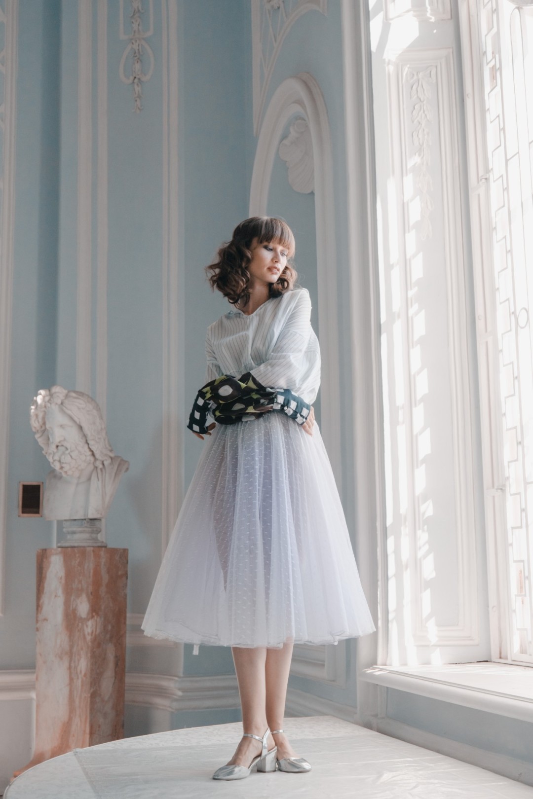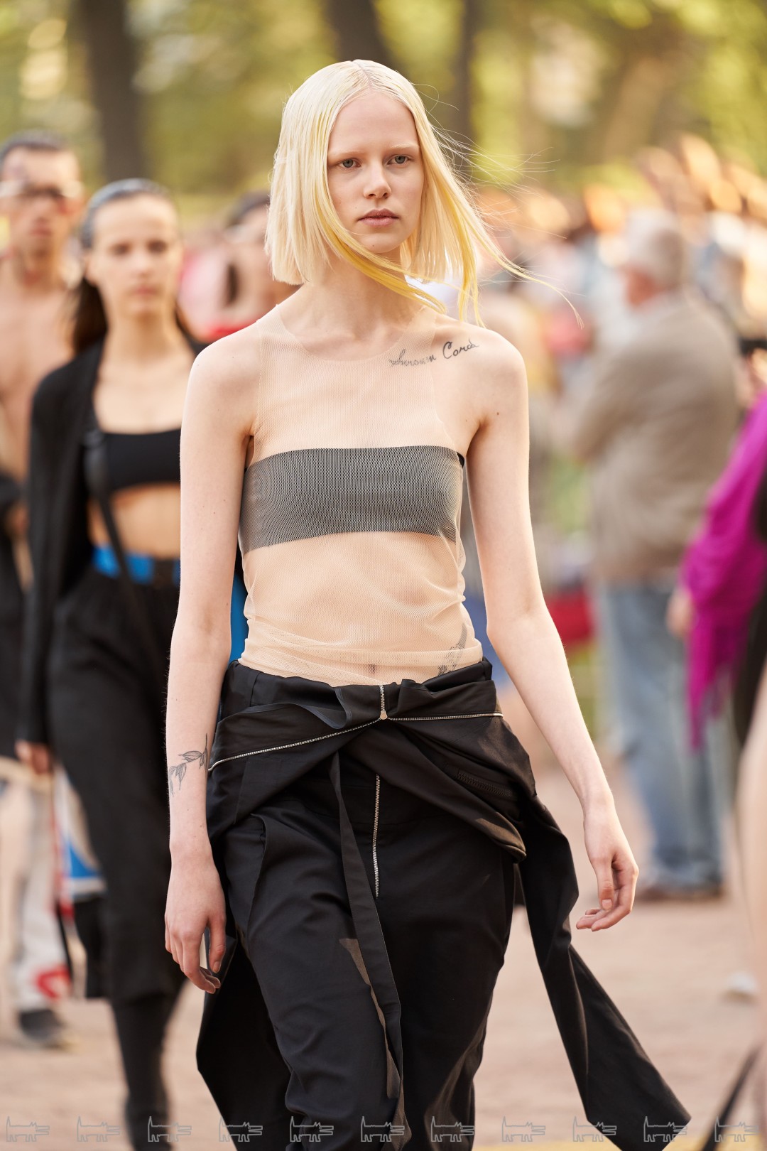Стас Лопаткин не стал обращаться к конкретному театру, пьесе или эпохе, сделав коллекцию образов, которые люди примеряют на себя в течение всей своей жизни. На аллее у павильона «Эрмитаж» появились пышные кринолины, которые сатирики называли клетками для женщин, барочные платья, которые в эпоху Людовика XIV были показателем статуса и богатства, и даже юбки с черепами, отсылающие уже к 2000-м годам, к расцвету субкультуры «эмо». Образы, украшенные вышивками в виде животных, птиц и цветов — сильной стороной петербургского дизайнера, могли бы показываться не только в Царском селе, но и на прошедшем в мае Met Gala