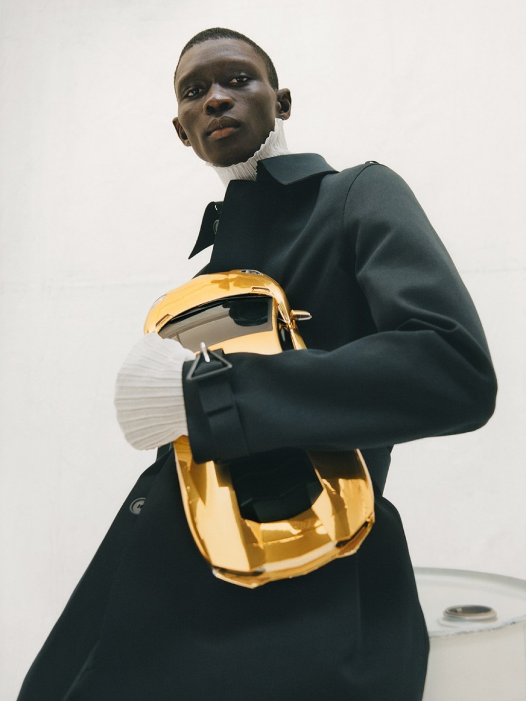 Напомним, в осенне-зимнюю коллекцию Bottega Veneta вошла и мужская, и женская одежда: стеганые пальто, трикотажные платья, кожаные брюки, миниатюрные сумки-кейсы и блестящие платья-рубашки, напоминающие дискобол.