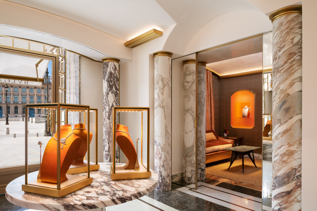 Флагманский бутик расположился в Париже на Вандомской площади. Автор бутика — архитектор Питер Марино — создал для Bvlgari новую концепцию и архитектурный стиль с опорой на римские корни и культурное наследие дома.