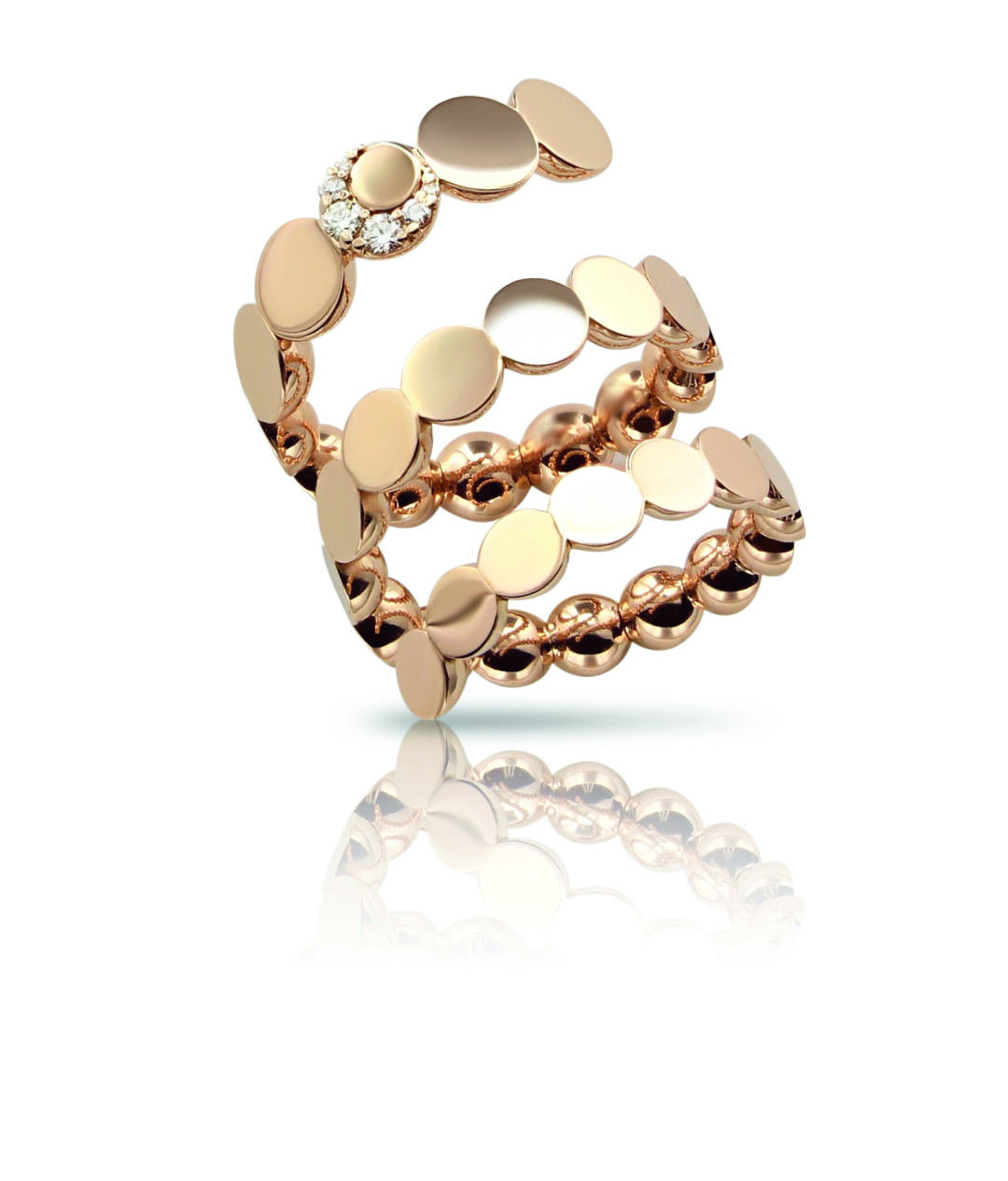 Вереница кругов из розового золота с невидимыми креплениями — это, по замыслу Паскуале Бруни, отраженная в волнах Лигурийского моря луна.
